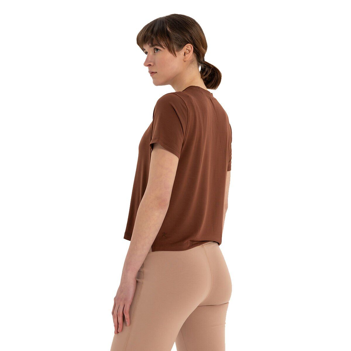 Inguz Modal Bisiklet Yaka Basic Yoga T-Shirt Kahverengi