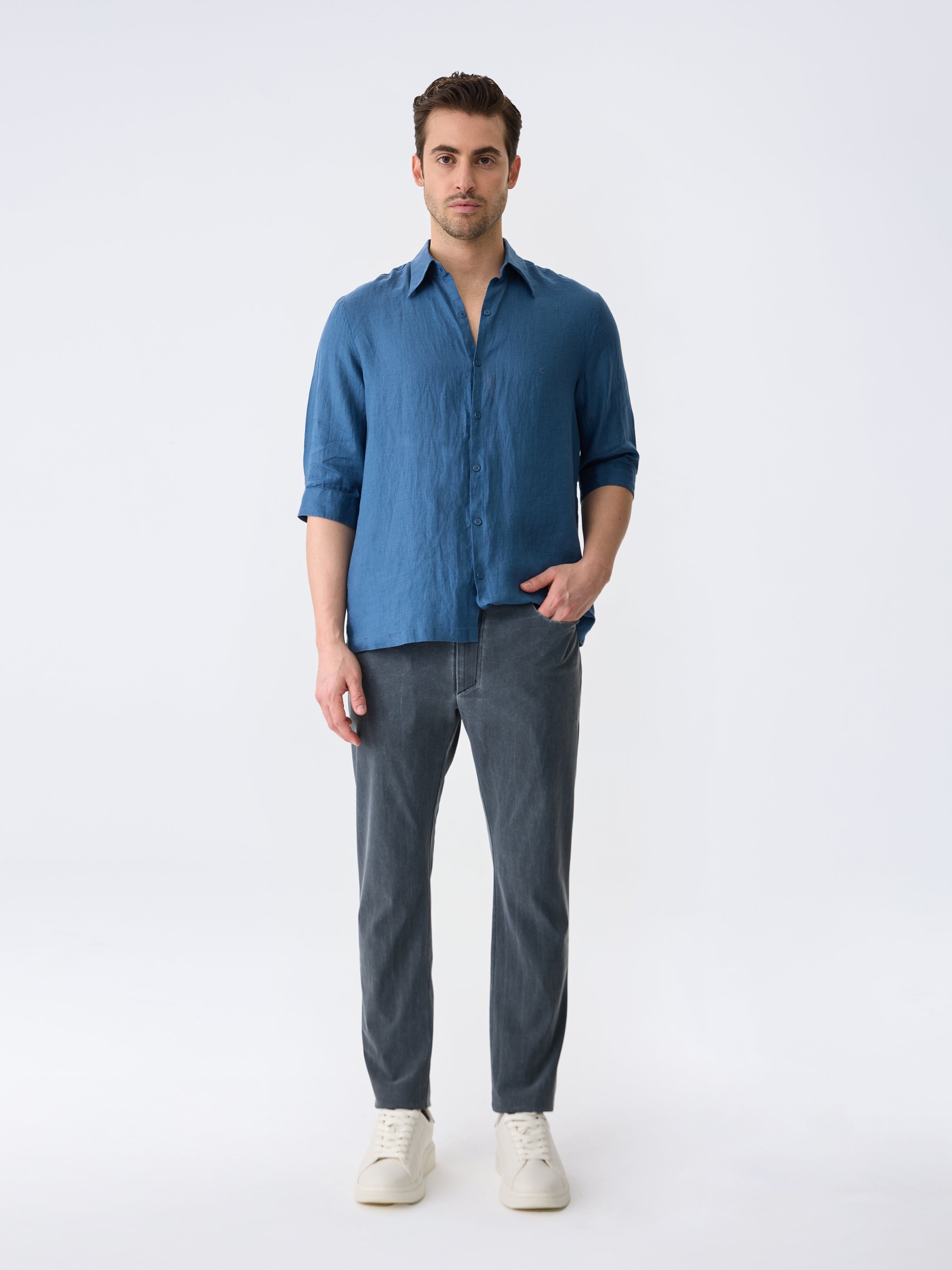 • Regular Fit• %100 saf keten kumaş• Yarım kollu tasarım — yaz günleri için ferah konfor• Düğme görünümlü snap (çıtçıt) kapama• Hipoalerjenik ve nefes alabilir yapı — hassas ciltler için gün boyu rahatlık• Hafif kırışık, doğal yüzey dokusu — ketenin özgün ve doğal karakteri• Yumuşak tuşe• 3D ISAORA logo detayı Modelin Bedeni: M Boy: 184 cm Kilo: 74 kg