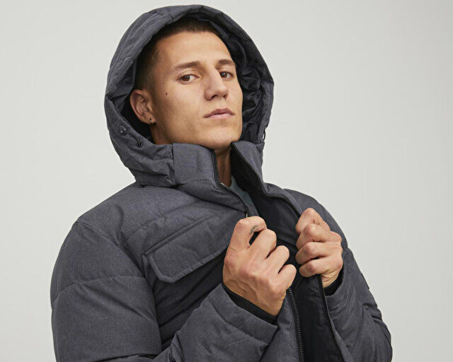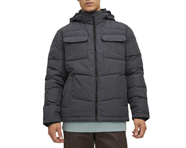 Jack Jones Jjbrady Puffer Sn Erkek Günlük Mont 12212233-DARK-GREY-MELANGE Gri