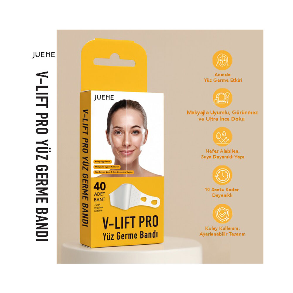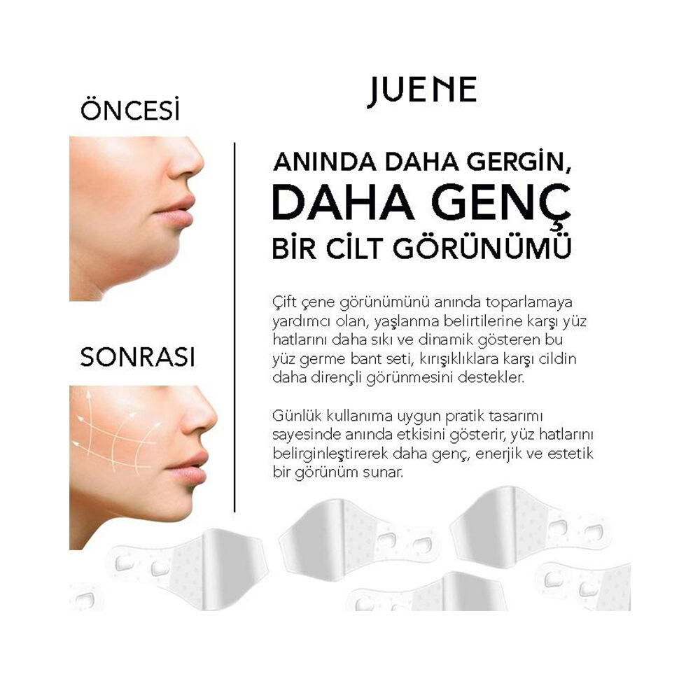 Juene V-Lift Pro Yüz Germe Bandı, genç ve sıkı bir cilt görünümü isteyen herkes için idealdir. Özellikle yaşlanma belirtileriyle mücadele etmek isteyenlerin tercihi olan bu ürün, günün her anında rahatlıkla kullanılabilir.