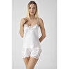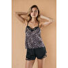Zarif dokunuşlarla tasarlanan bu fuşya saten takım, minimal şıklığı sevenler için özel olarak hazırlandı. İpeksi saten kumaşı ciltte pürüzsüz bir his bırakırken, dantel detayları tasarıma feminen bir zarafet katar. Askılı üstü ve rahat kesim şortu sayesinde hem konforlu hem de şık bir ev giyim deneyimi sunar. Kendinizi özel hissetmek istediğiniz her an için ideal bir seçim.