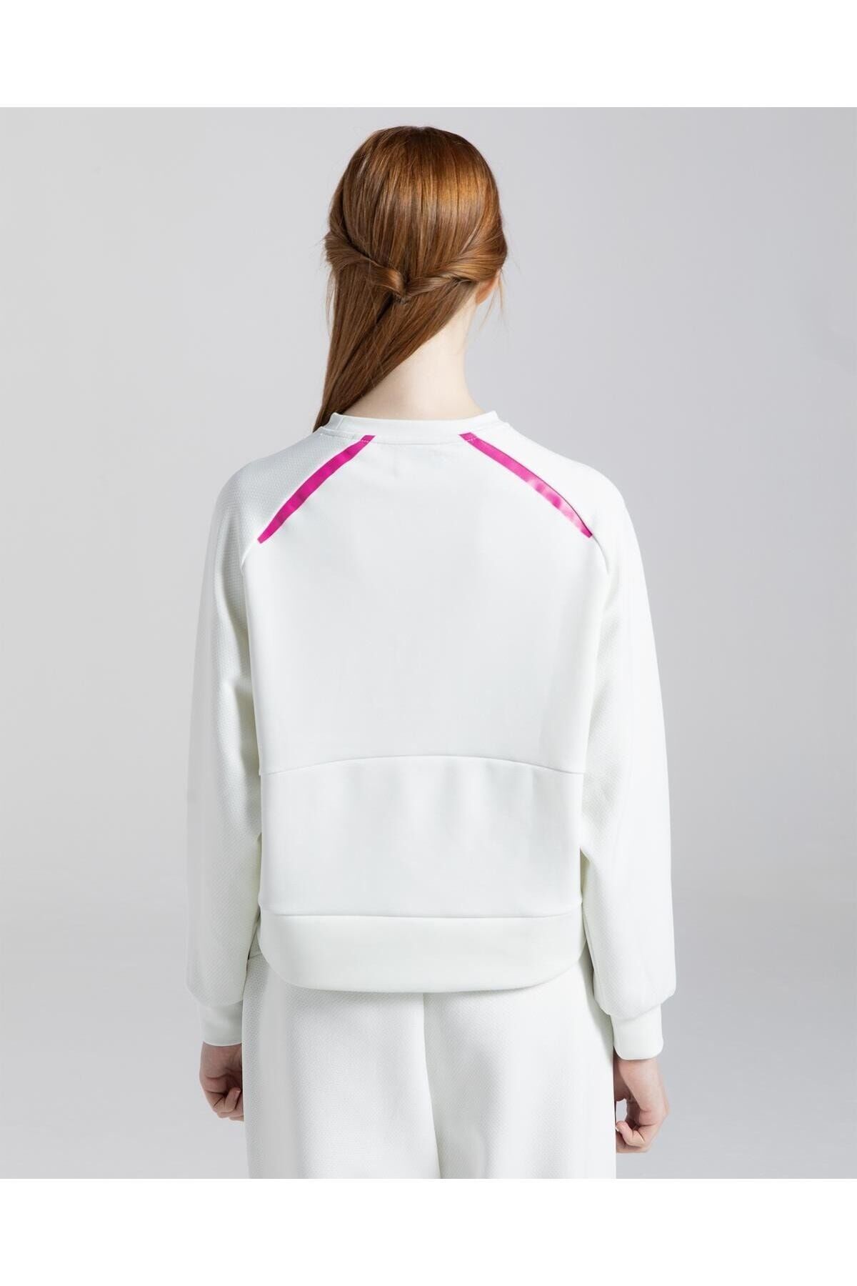Sport Collection görselindeki model 176 cm'dir ve üzerindeki S bedendir. Göğüs ölçüsü 84 cm, bel ölçüsü 60 cm, basen ölçüsü ise 87 cm'dir. Damlacıklı özel geliştirilen yumuşak kumaşı sayesinde tok ve akıcı bir görünüm sunar. Detay pembe şeridi ile minimal bir dokunuşa sahip Emota, Ebanista eşofman altı ile takım yapılabilinir.
