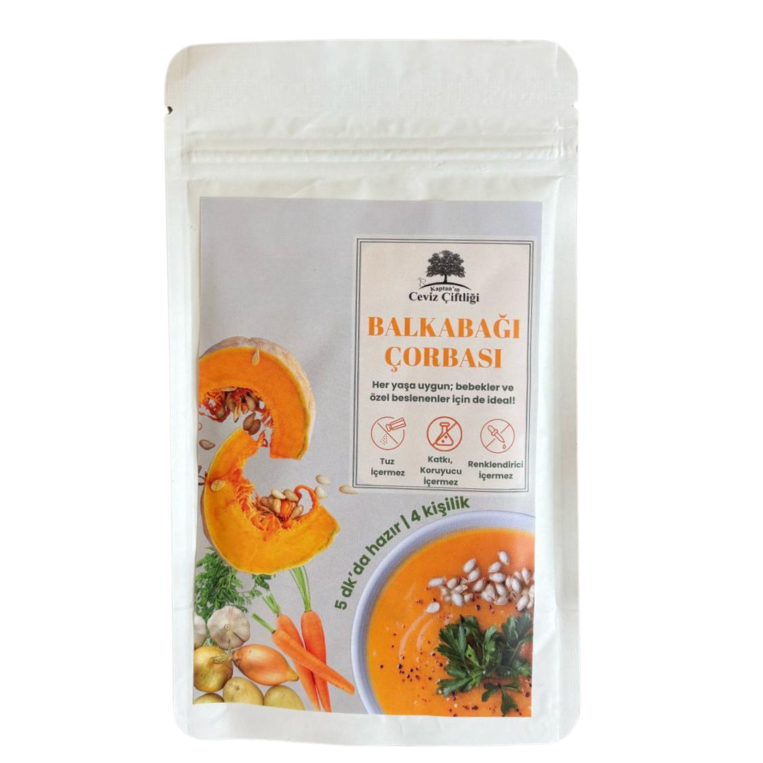 Balkabağı, havuç, patates ve soğanın nefis uyumu, karabiber ve nane ile dengelenerek damakta yumuşak ama doyurucu bir tat bırakır. Koruyucu, katkı maddesi ve ilave tuz içermez!