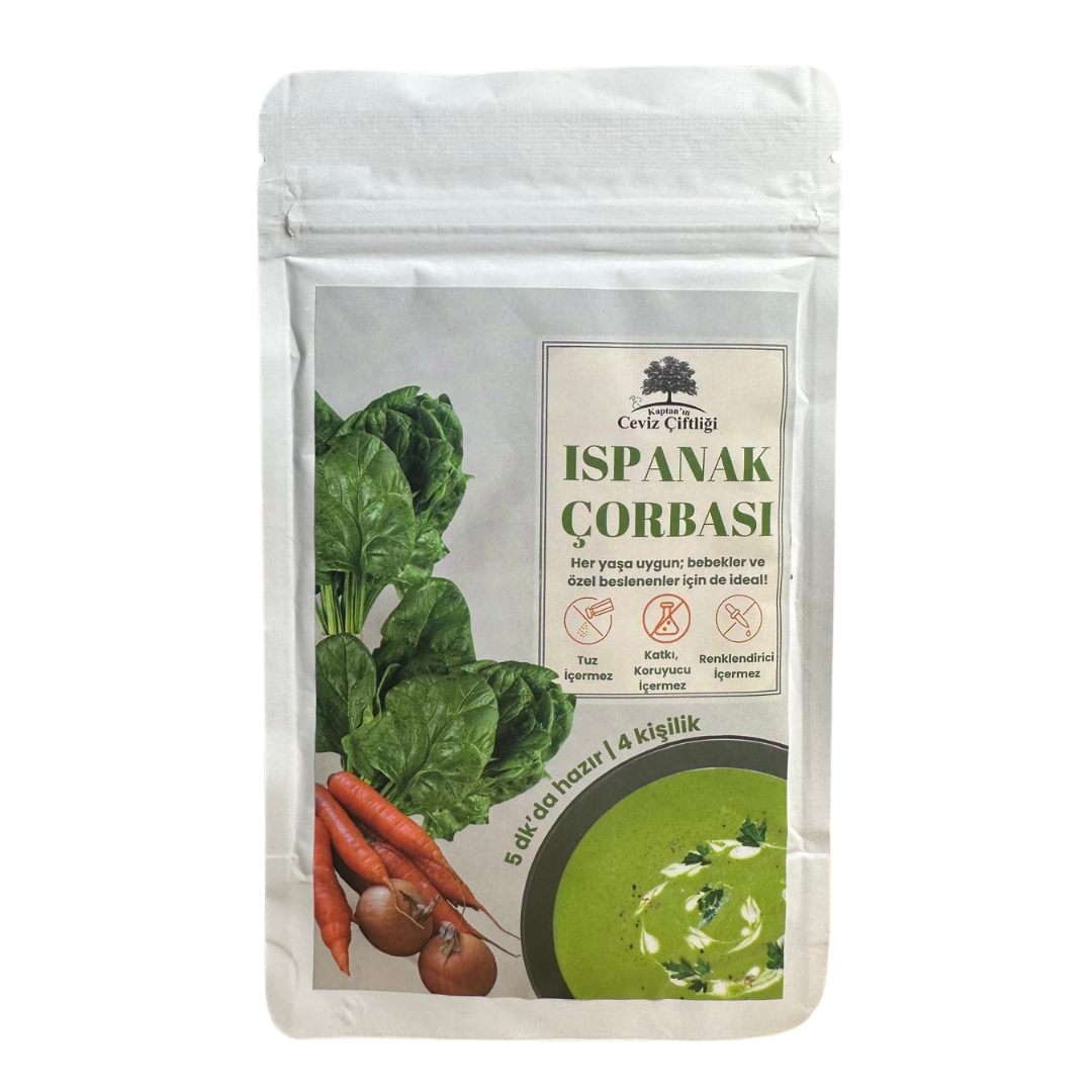 Vitamin ve mineral açısından zengin Ispanak Çorbası , besleyici içeriğiyle hem çocuklar hem de yetişkinler için sağlıklı ve doyurucu bir alternatif sunar. Koruyucu ve katkı maddesi içermez , doğal sebzelerle hazırlanmıştır. Hızlı ve pratik pişirme yöntemiyle zamandan tasarruf etmenize yardımcı olur.