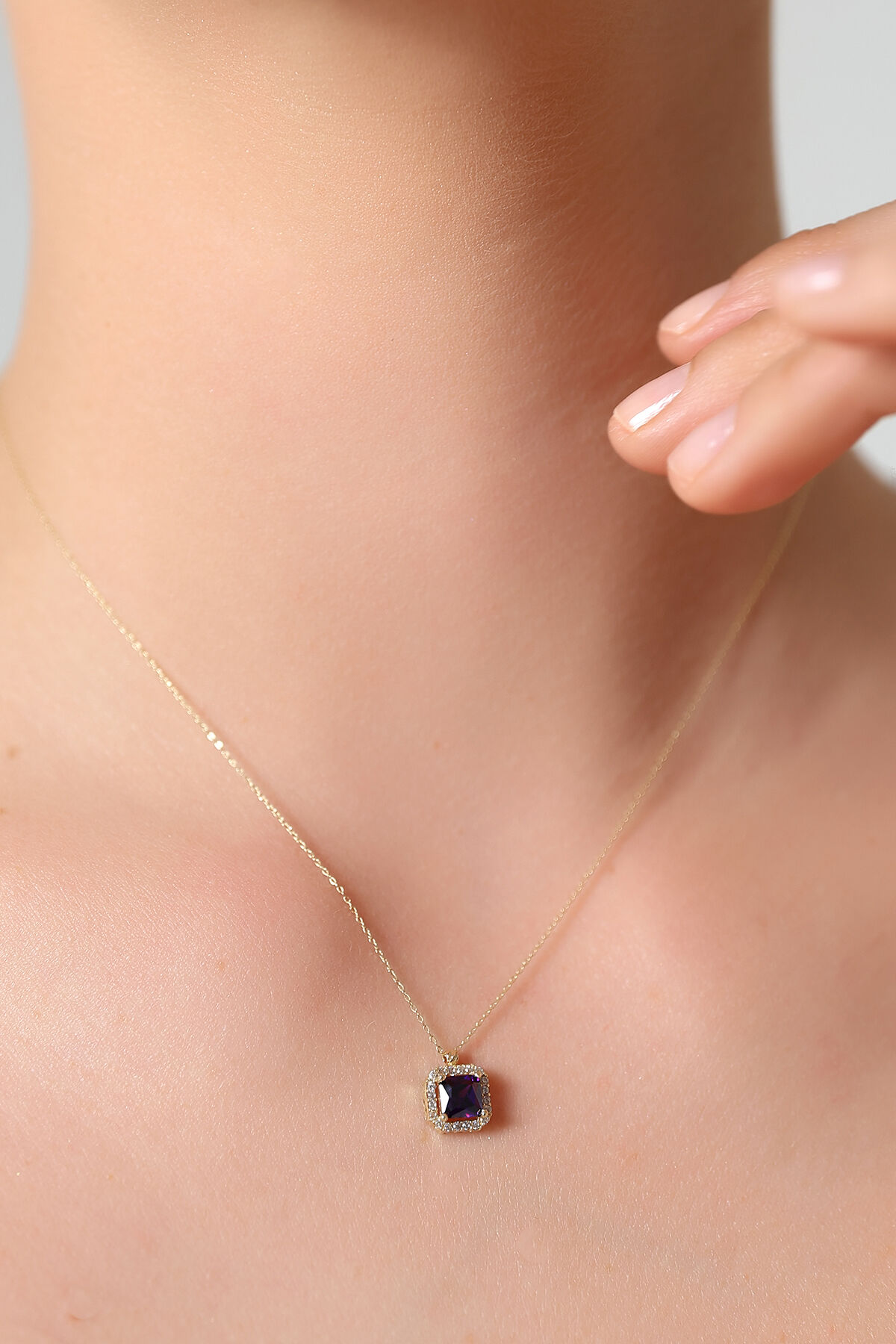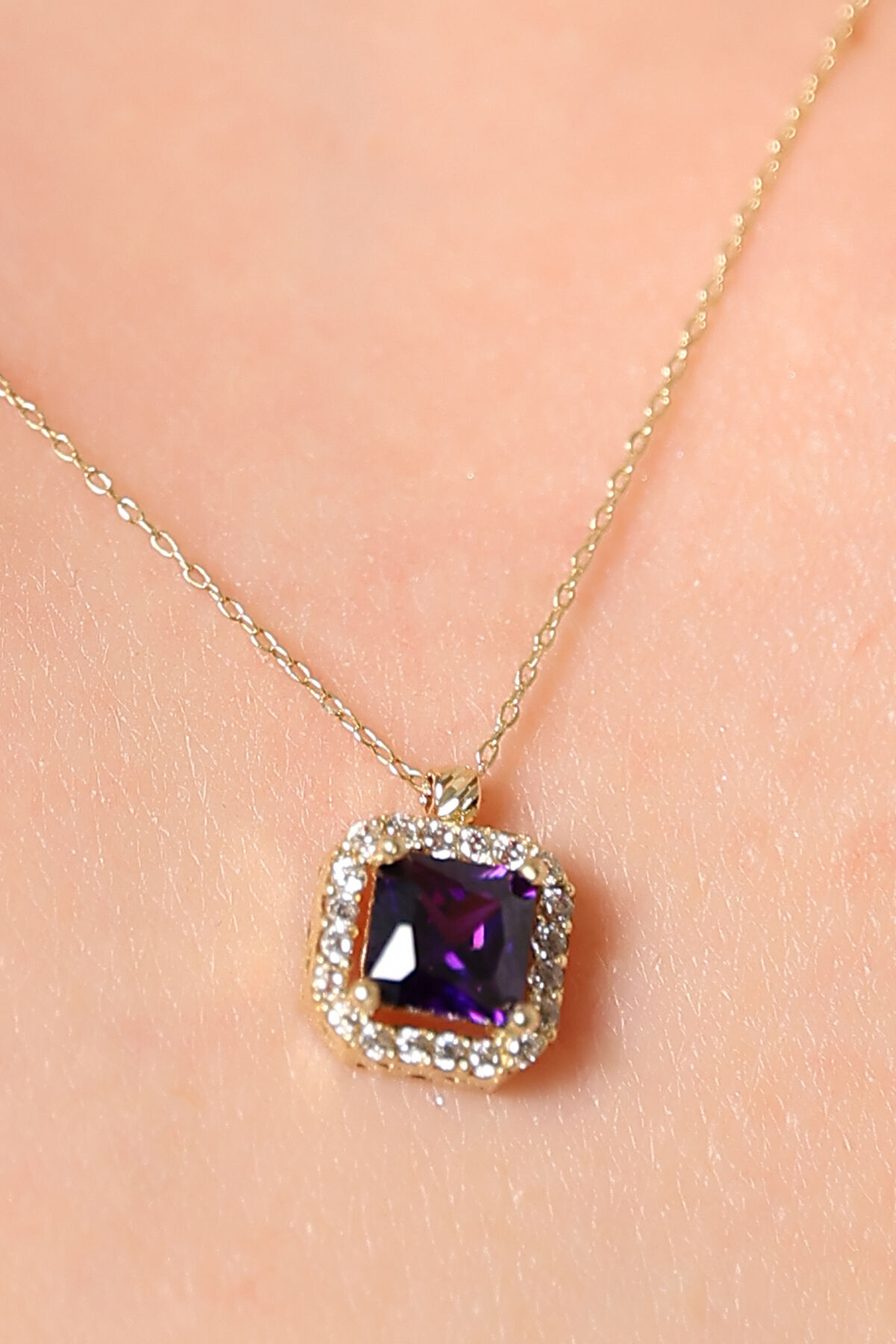 Kolyecik 14 Ayar Altın Amatist Baget Kolye