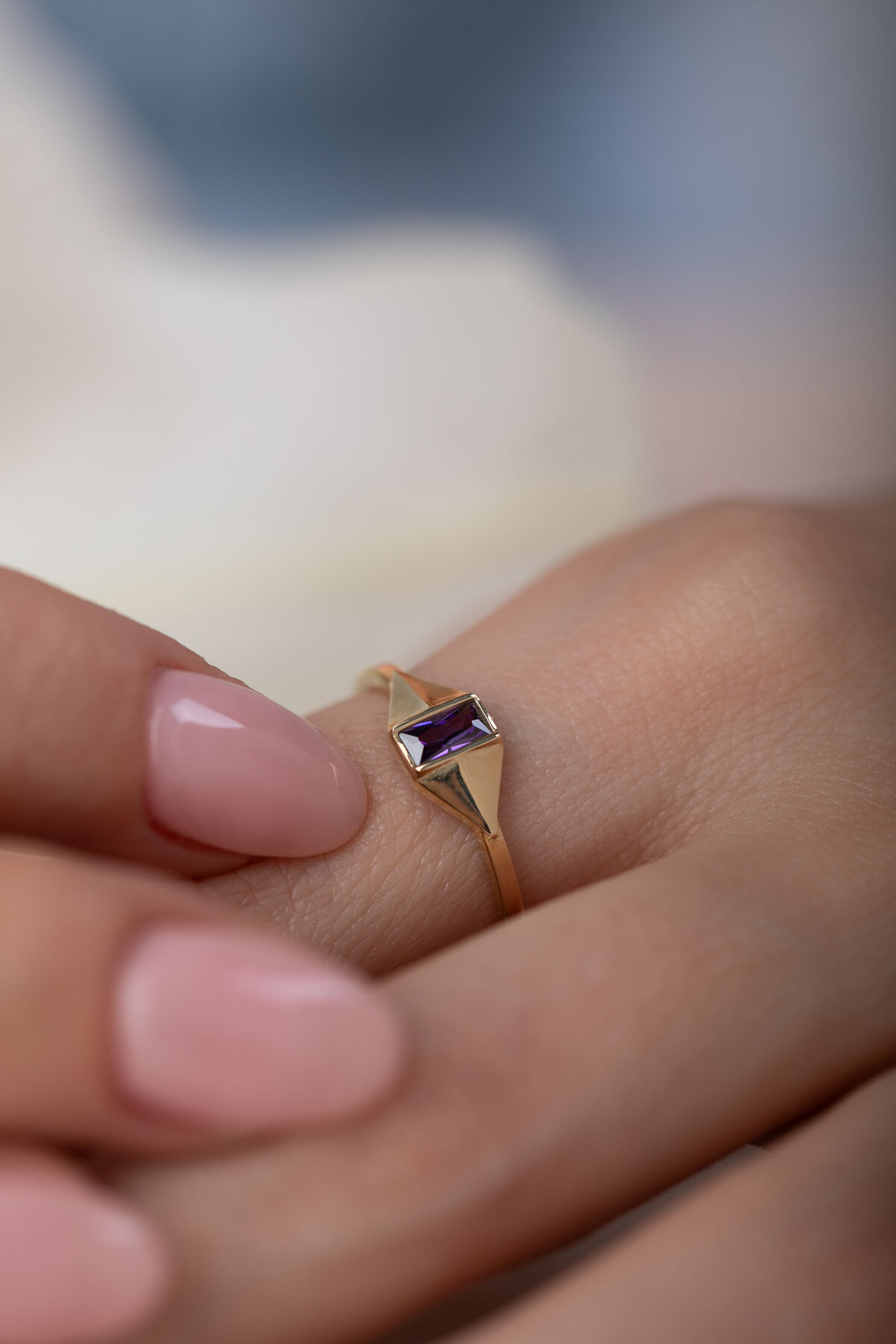 Kolyecik 14 Ayar Altın Amatist Taşlı Yüzük