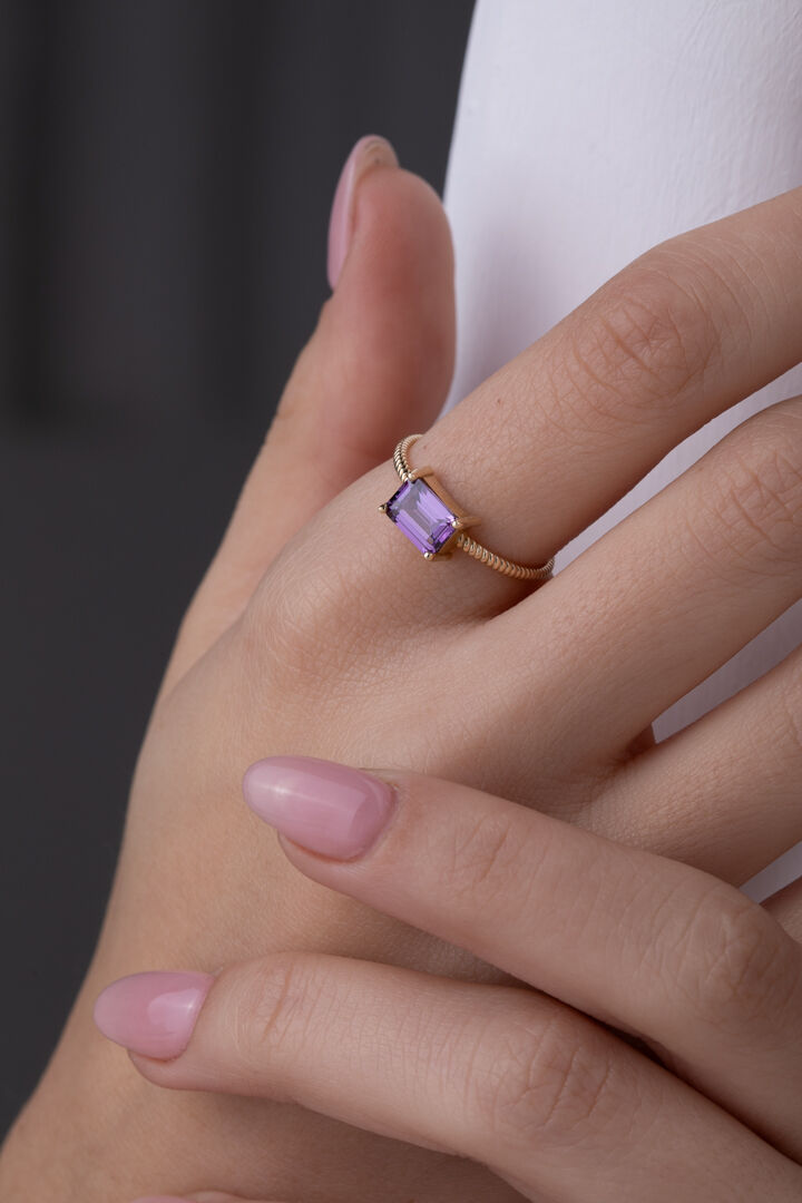 Kolyecik 14 Ayar Altın Ametist Taşlı Baget Yüzük