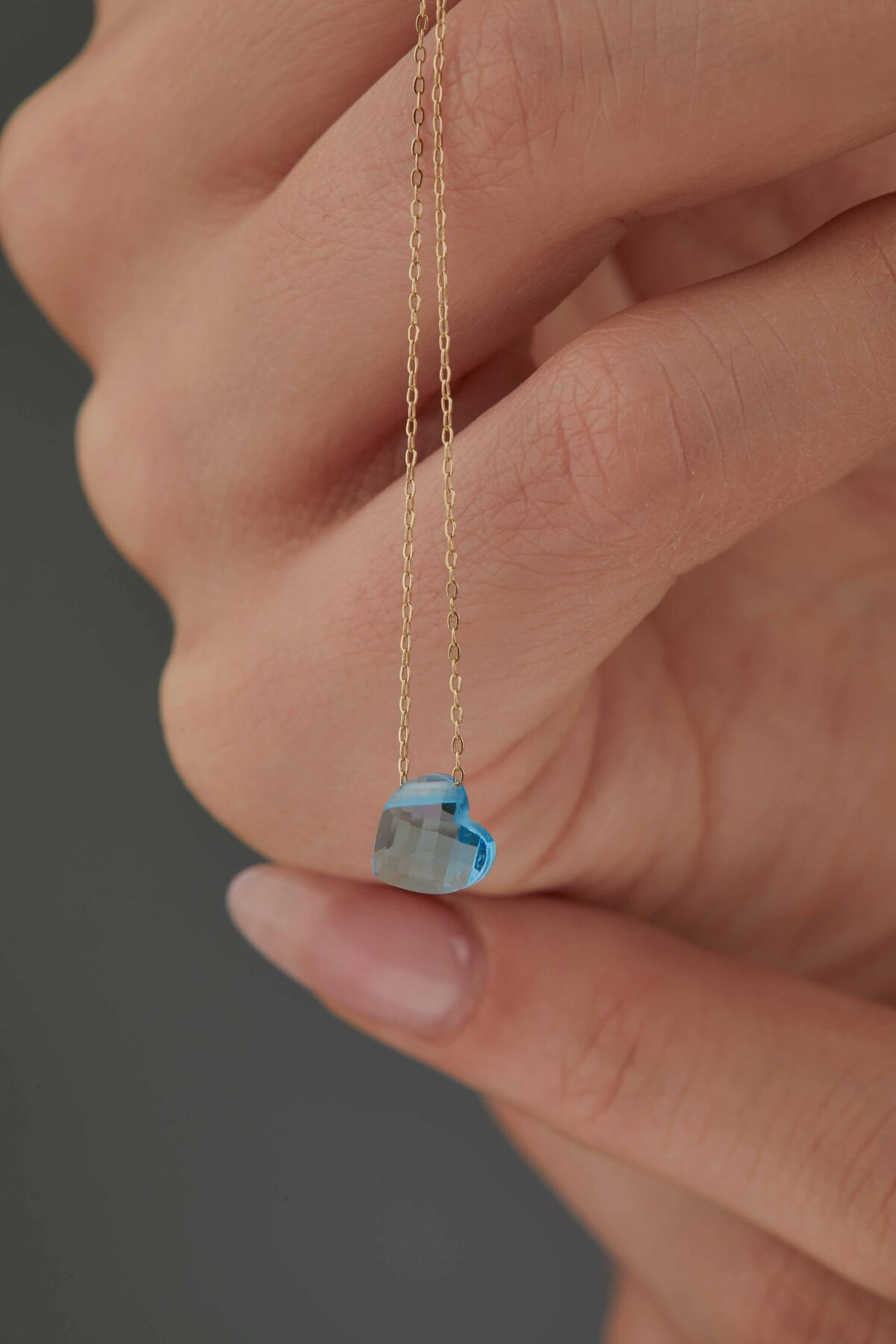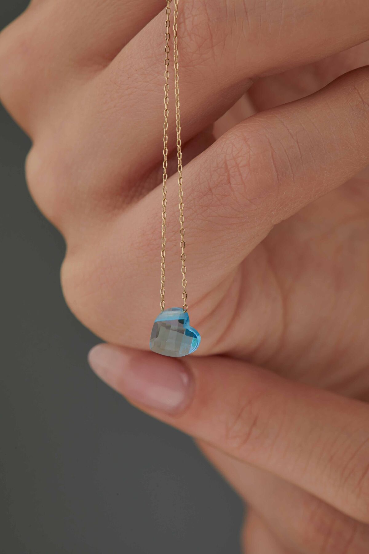 Kolyecik 14 Ayar Altın Aqua Kalp Kolye