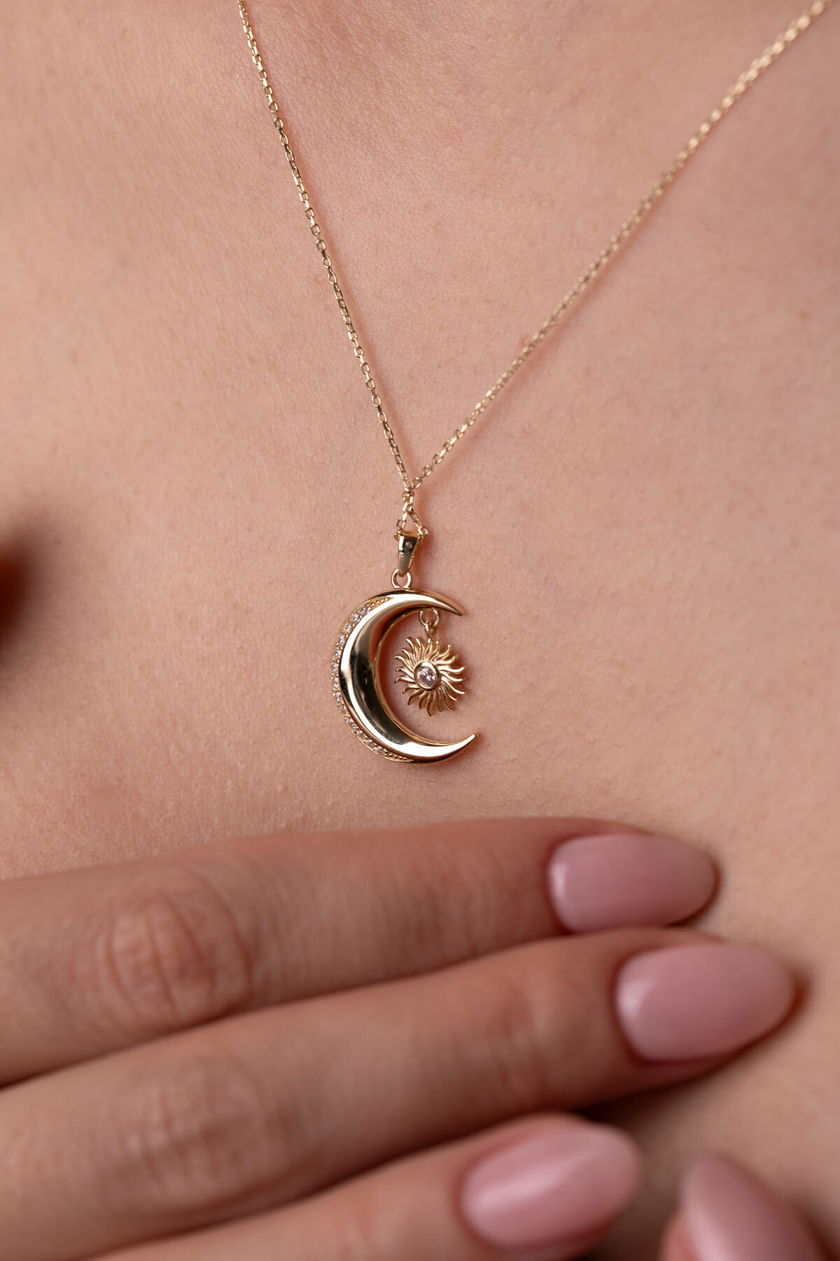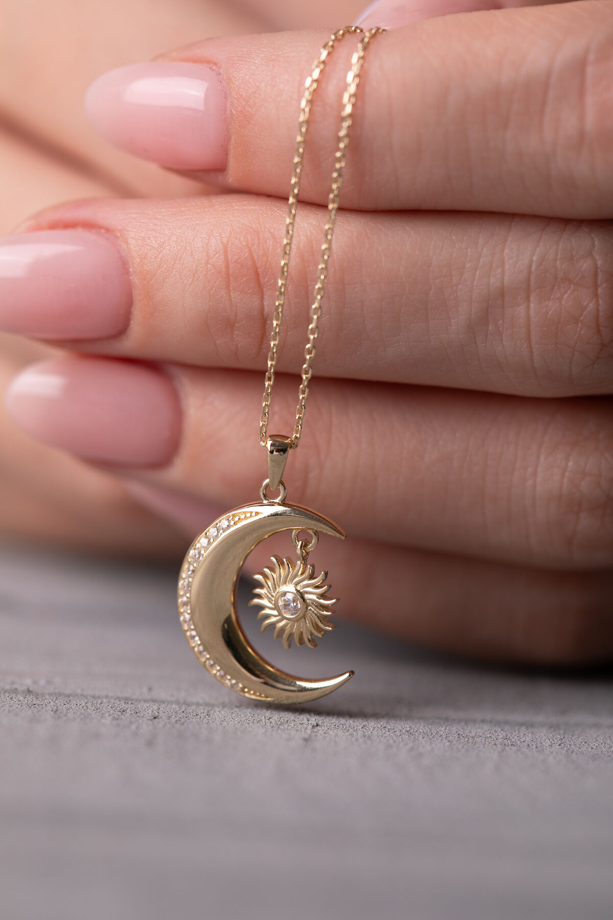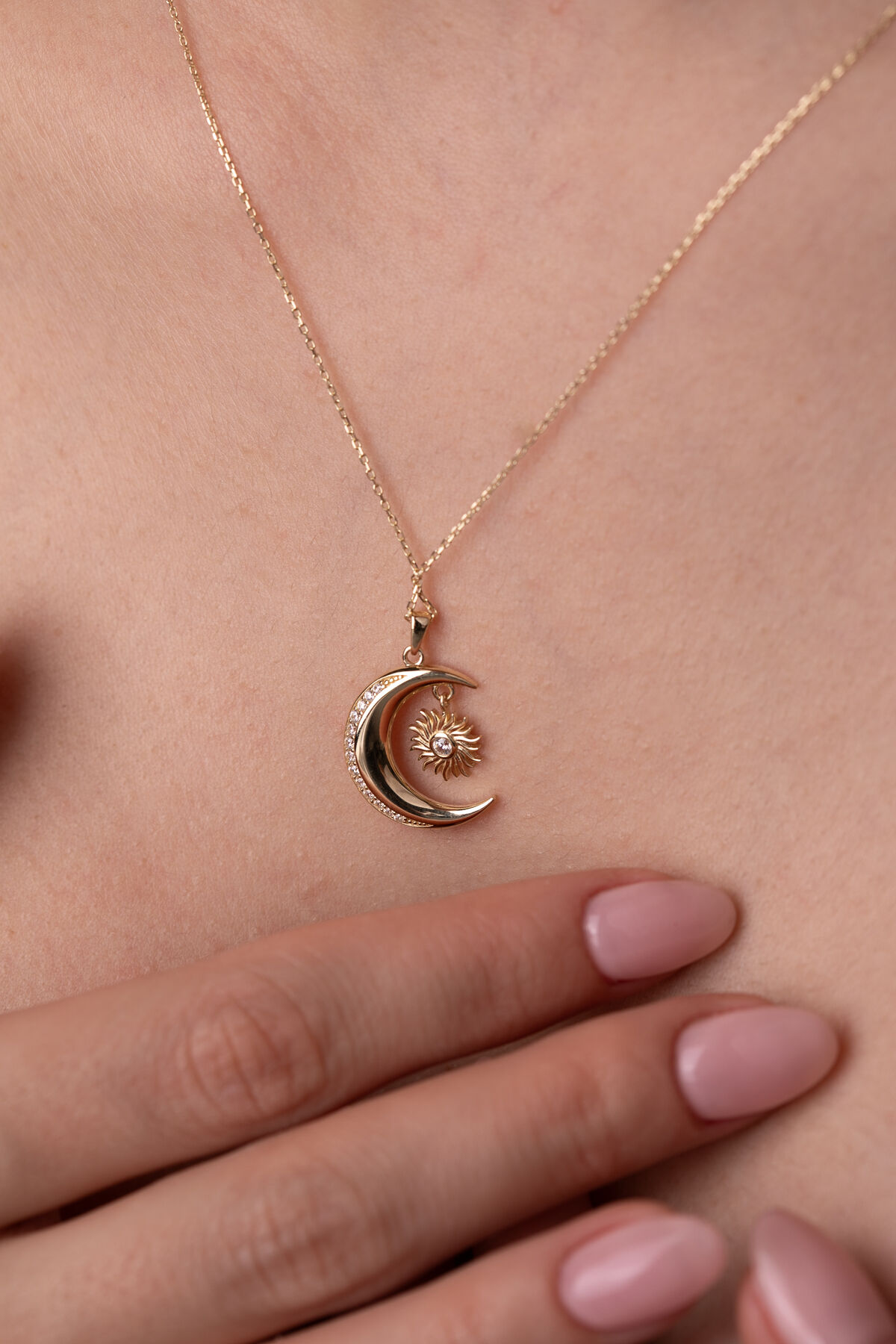 Kolyecik 14 Ayar Altın Ay Güneş Kolye