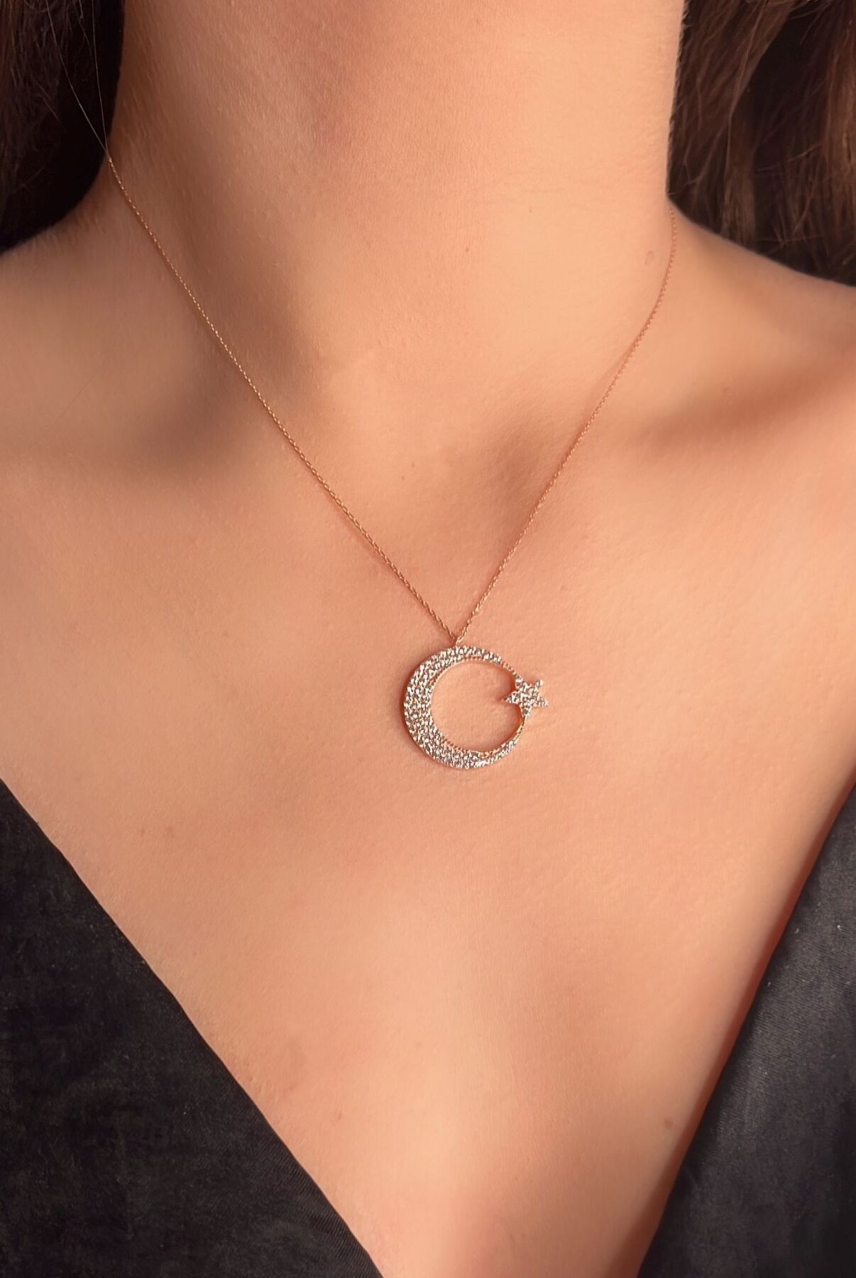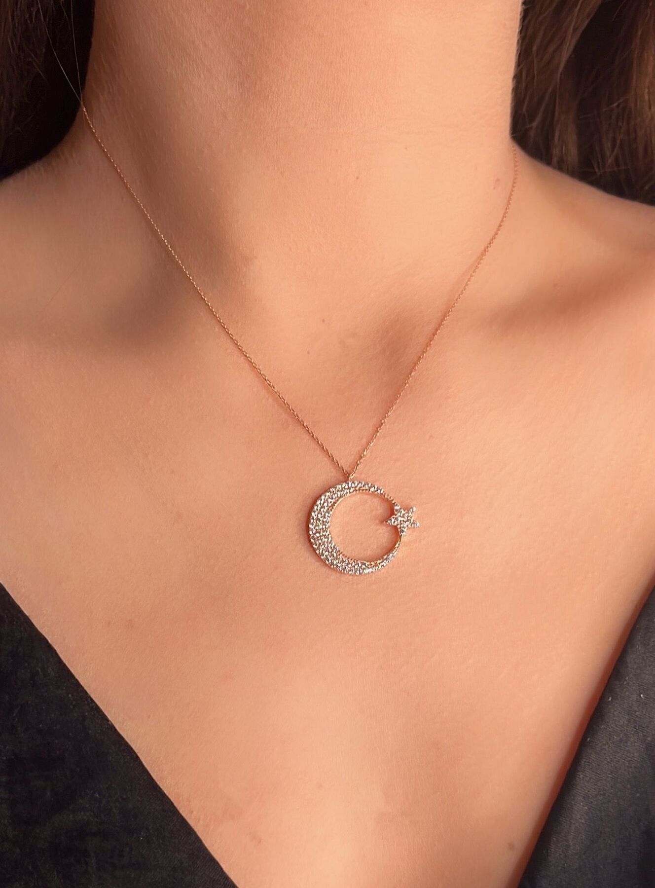 Kolyecik 14 Ayar Altın Ay Yıldız Kolye