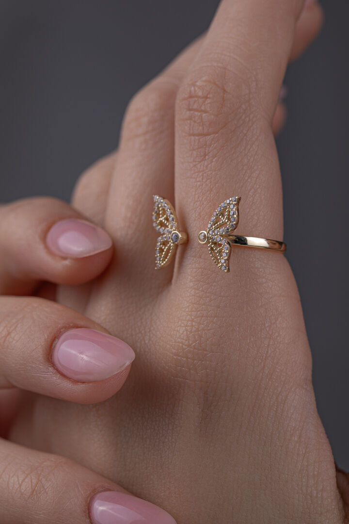 Kolyecik 14 Ayar Altın Ayarlanabilir Kelebek Yüzük