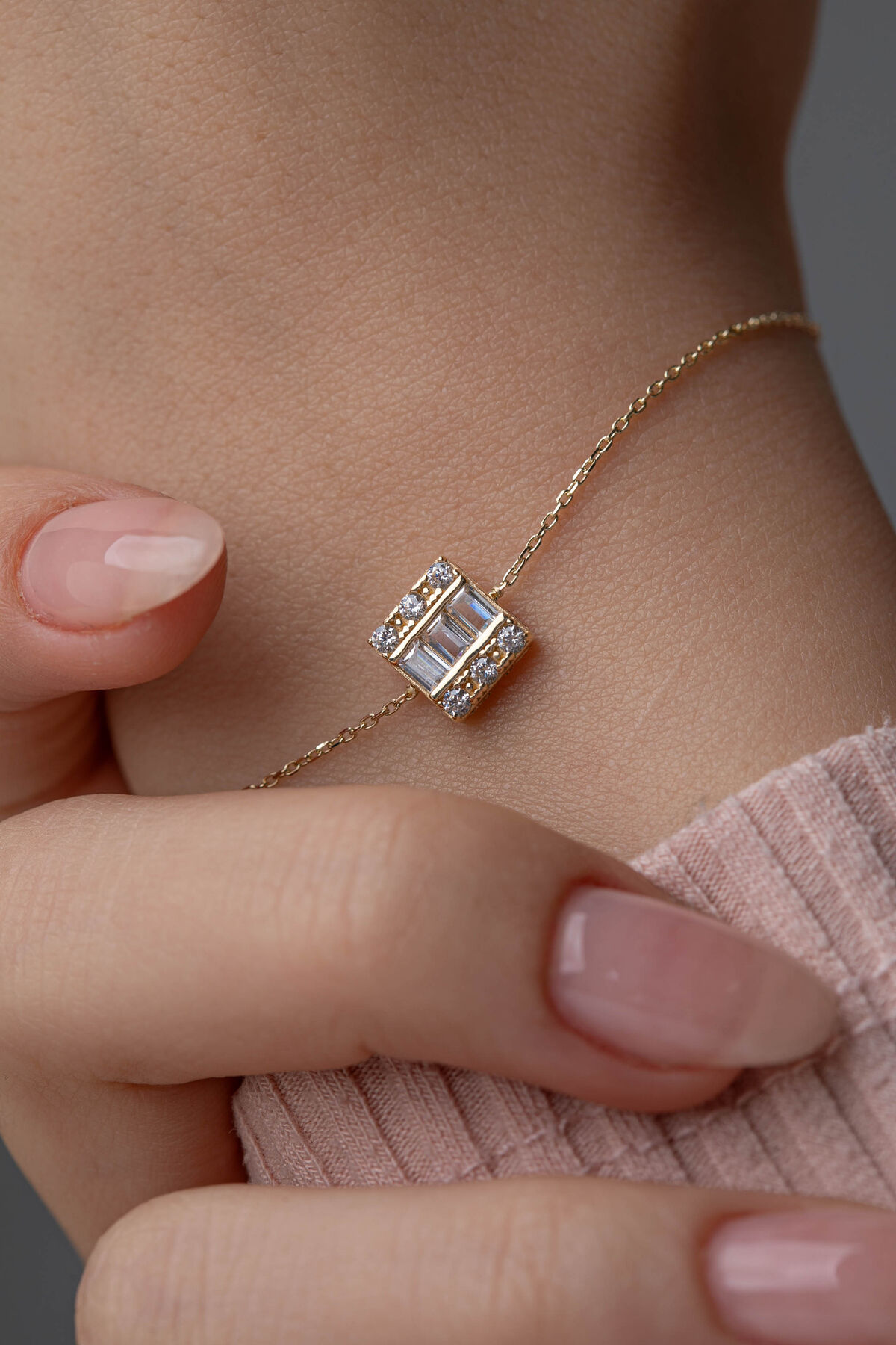 Kolyecik’in zarif işçiliğiyle tasarlanan 14 Ayar Altın Baget Bileklik, 1,25 gram ağırlığıyla bileğinizde minimal ve şık bir duruş sunar. Baget taş detaylı tasarımı, altının parlak yüzeyiyle birleşerek stilinize zarif ve dikkat çekici bir dokunuş ekler. Zincir uzunluğu 18,5 cm olup, 2 cm uzatma halkası ile toplamda 20,5 cm’ye kadar ayarlanabilir bileğinizin ölçüsüne göre sıkı veya bol kullanım imkanı sağlar. Günlük kombinlerde sade bir tamamlayıcı, özel günlerde ise göz alıcı bir aksesuar olarak öne çıkar. El yapımı üretim süreci nedeniyle gramajda %5’e kadar farklılık olabilir. Hafif ve konforlu tasarımıyla gün boyu rahat kullanım sağlar. Siparişleriniz özenle hazırlanarak, sigortalı kargo ile en geç 2 iş günü içinde güvenle teslim edilir. Her ürüne özel orijinallik sertifikası mevcuttur.