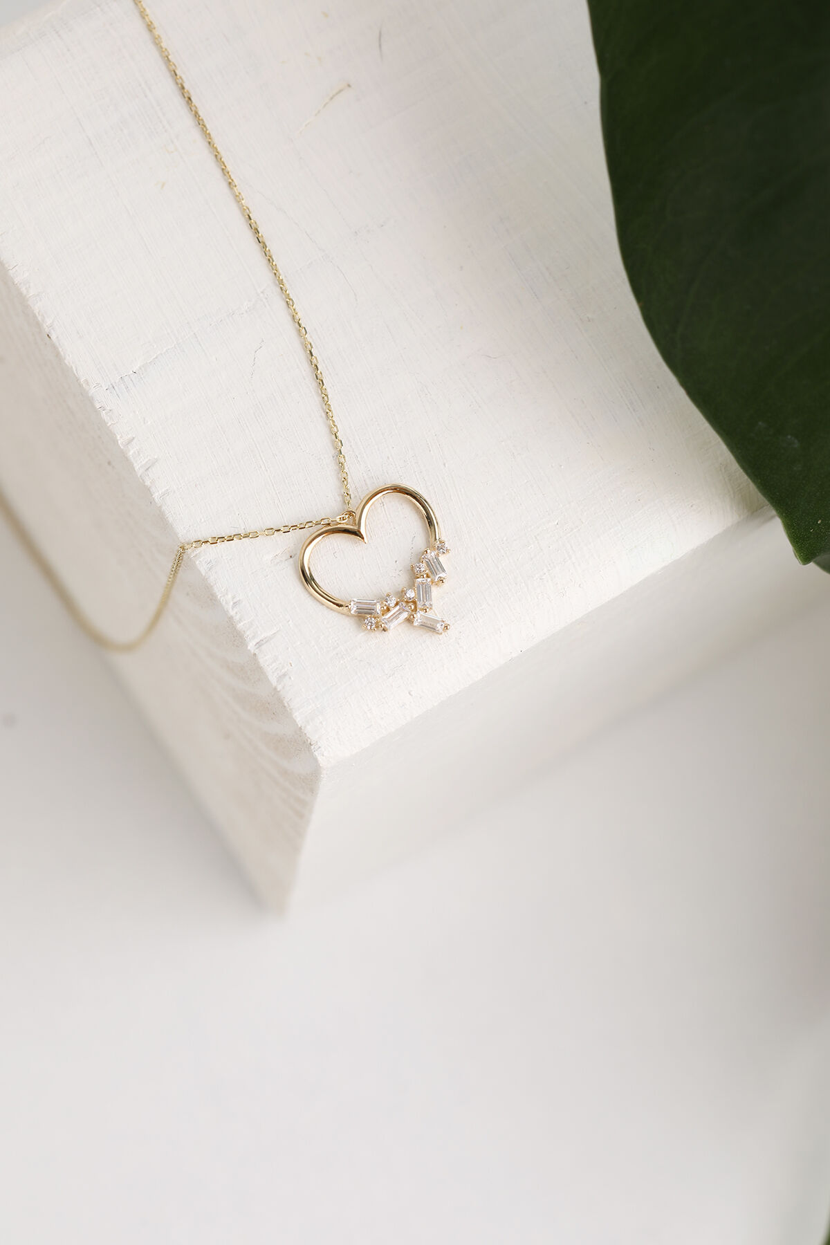 Kolyecik 14 Ayar Altın Baget Kalp Kolye