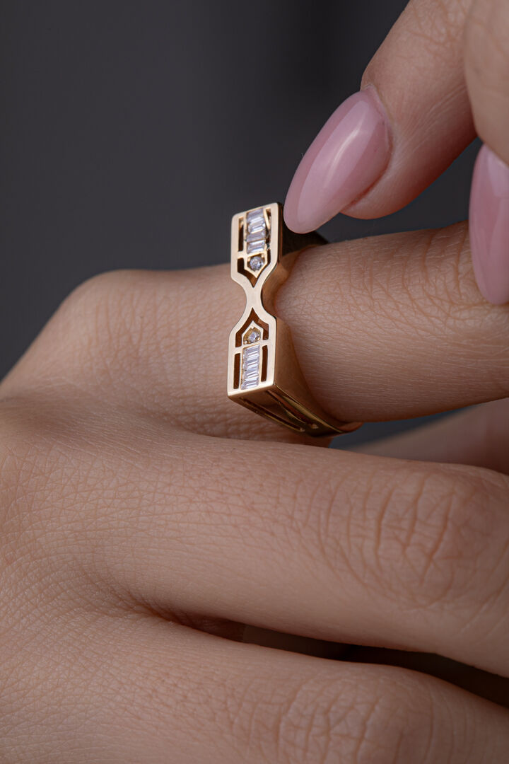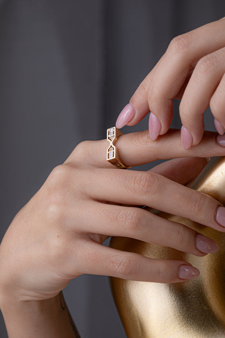 Minimalizmin ve sofistike zarafetin birleşimi… Bu 14 ayar altın baget taşlı yüzük, geometrik tasarımı ve baget taşın parlaklığıyla stilinize modern bir dokunuş katıyor. 1,97 gramlık dengeli yapısı parmakta konforlu bir duruş sağlarken, baget taşın ışıltısı altının sıcak tonlarıyla mükemmel bir uyum yakalar. Baget taş zarafeti, inceliği ve sofistike şıklığı simgeler. Usta el işçiliğiyle hazırlanmış bu yüzük, günlük kombinlerde sade ve şık bir tamamlayıcı, özel davetlerde ise göz alıcı bir aksesuar olarak öne çıkar. Ürüne özel sertifikasıyla güvenle sunulan bu tasarım, sevdiklerinize anlam dolu bir armağan veya kendinize modern ve zarif bir ışıltı olarak mükemmel bir tercihtir. Siparişiniz 2 iş günü içinde özenle kargoya verilir.