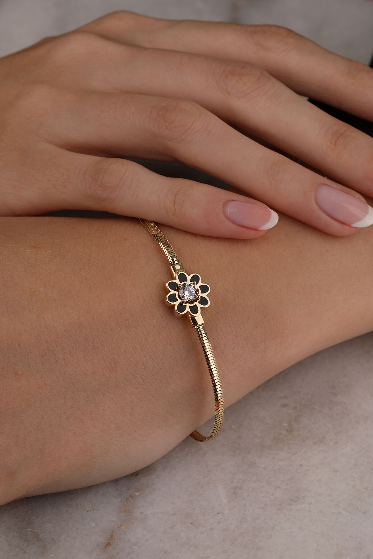 Kolyecik 14 Ayar Altın Balık Sırtı Çiçek Bileklik
