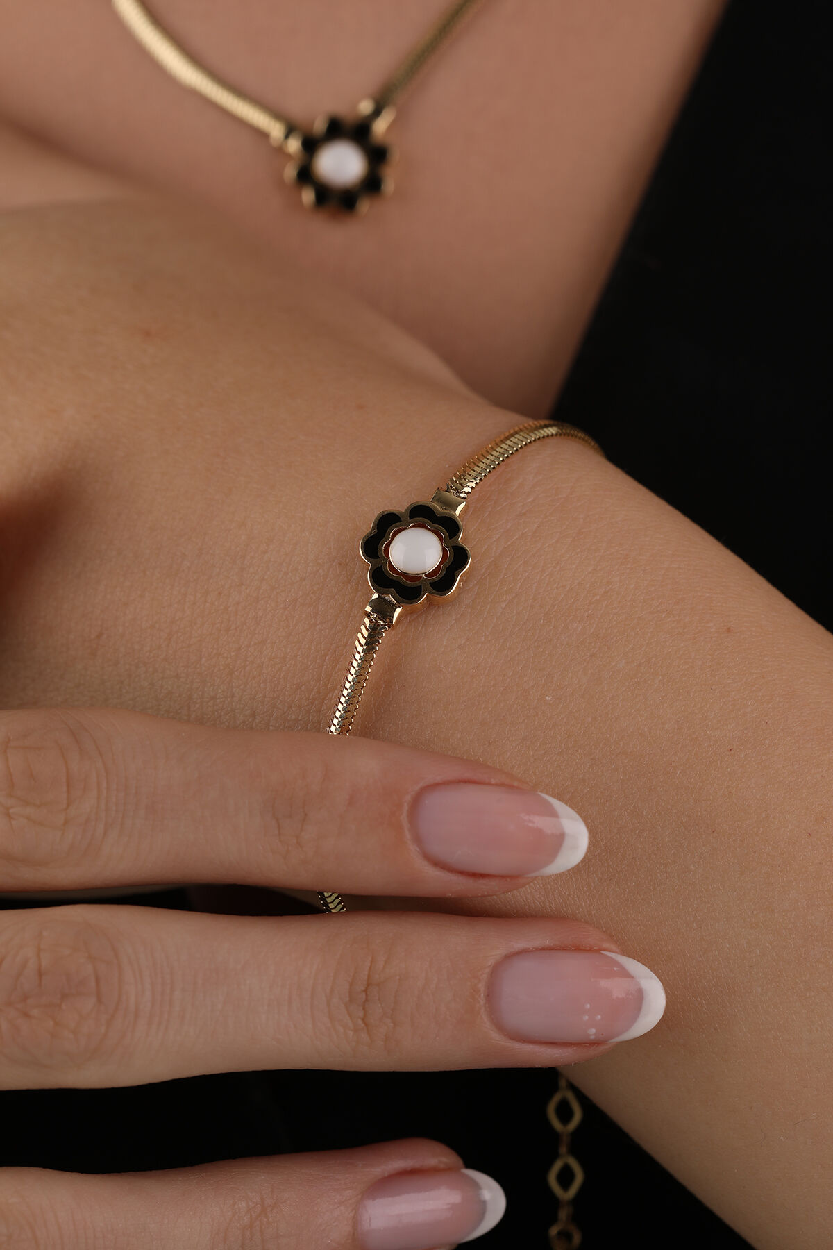 Kolyecik 14 Ayar Altın Balık Sırtı Mineli Yonca Bileklik