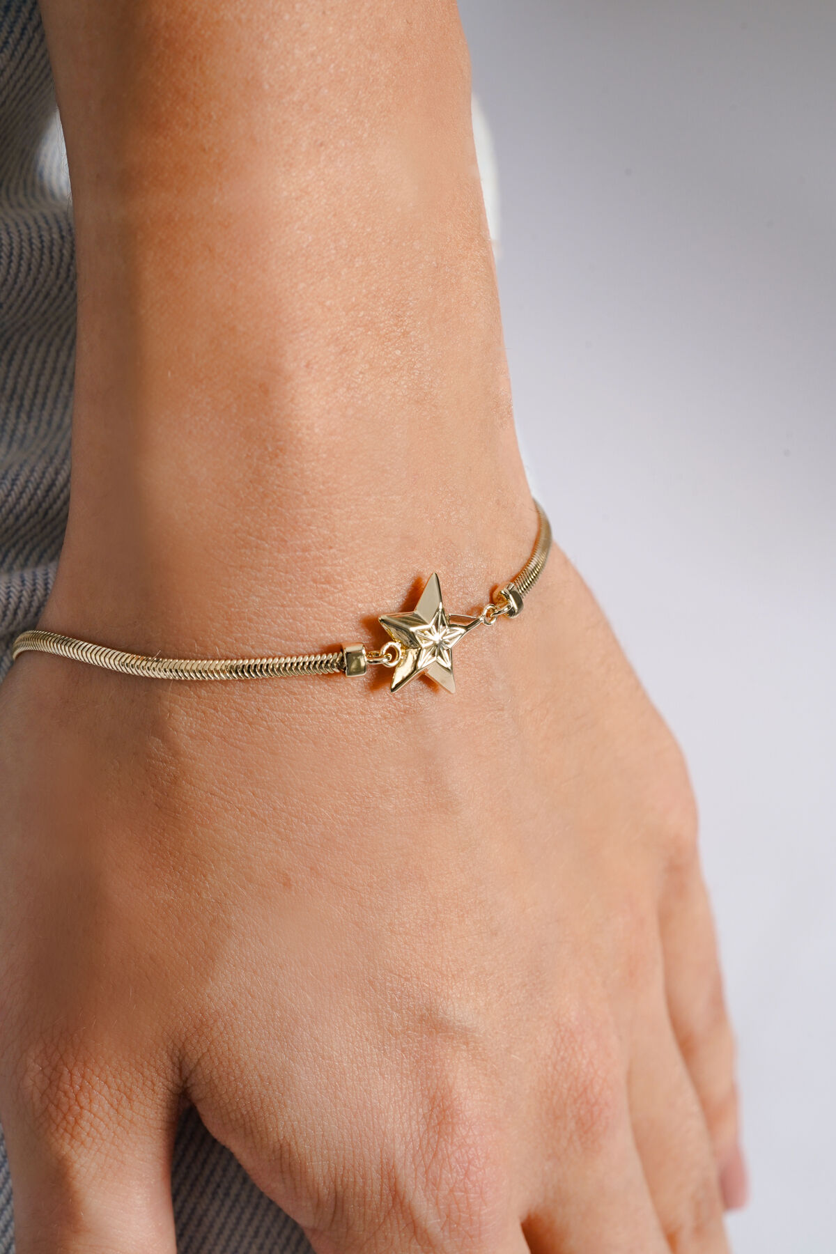 Kolyecik 14 Ayar Altın Balıksırtı Yıldız Bileklik