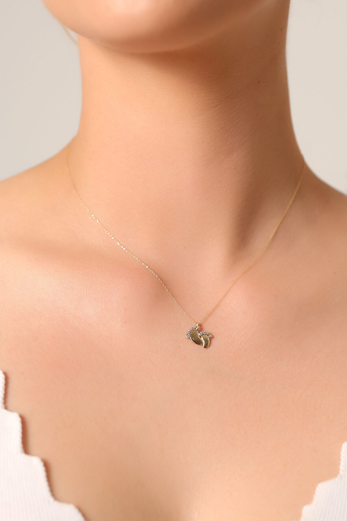 Kolyecik 14 Ayar Altın Bebek Ayak Kolye