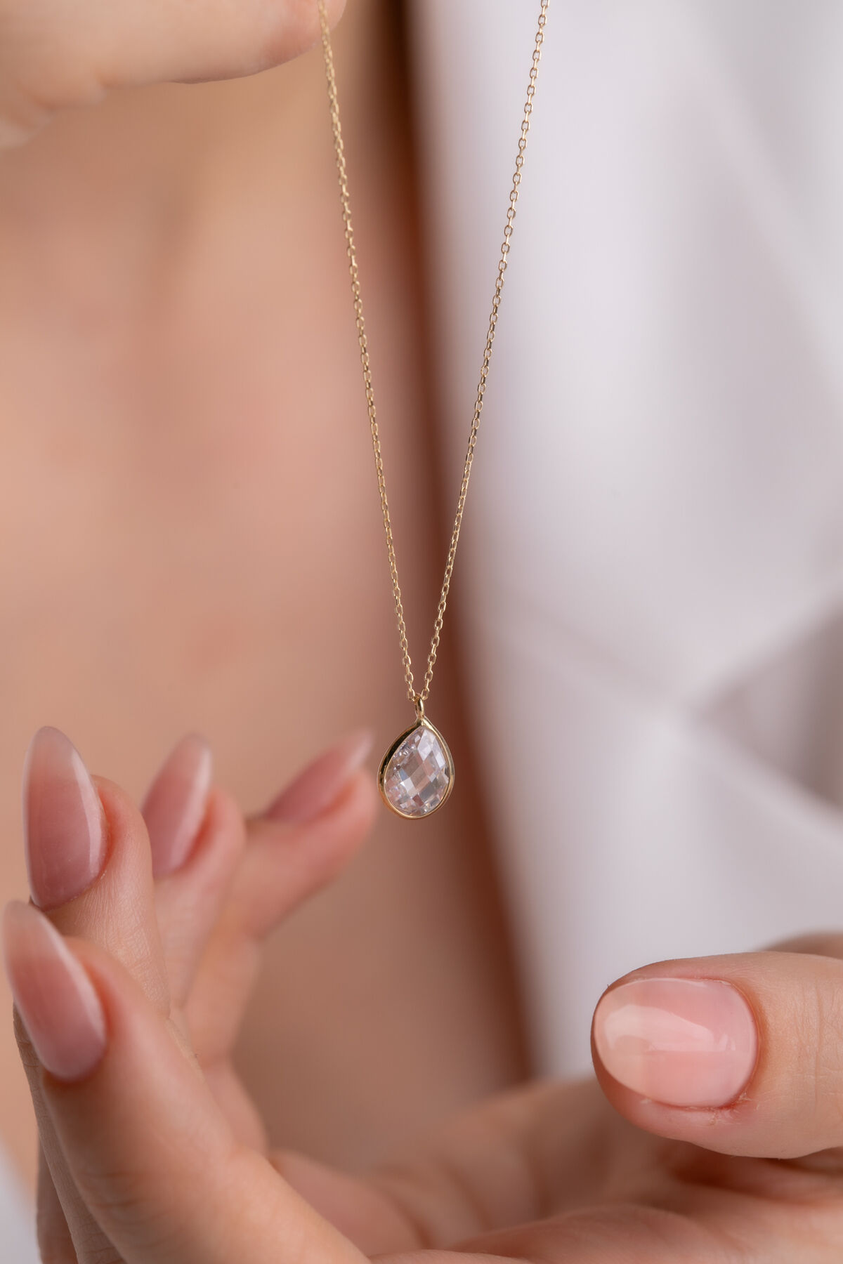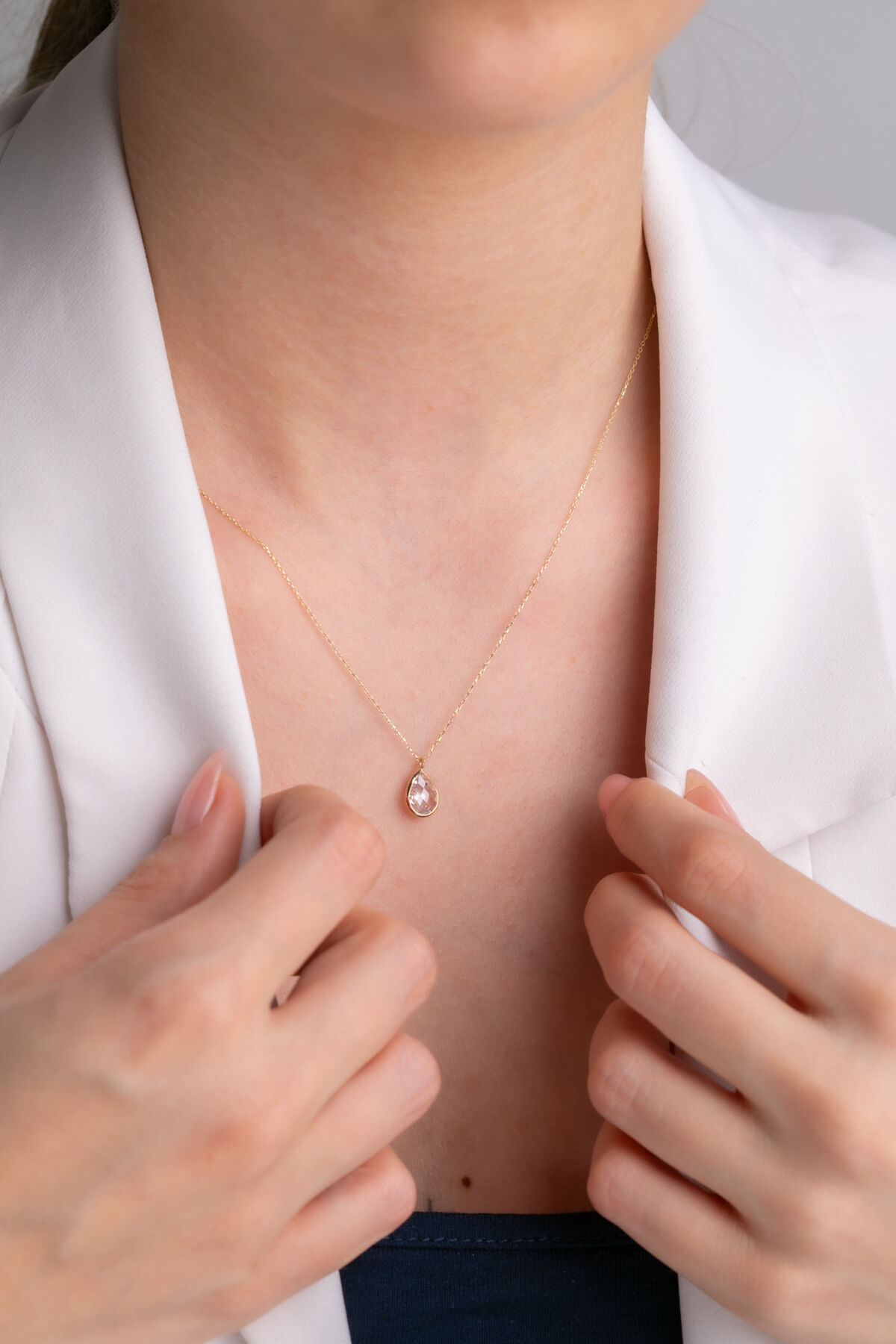 Kolyecik 14 Ayar Altın Beyaz Damla Taş Kolye