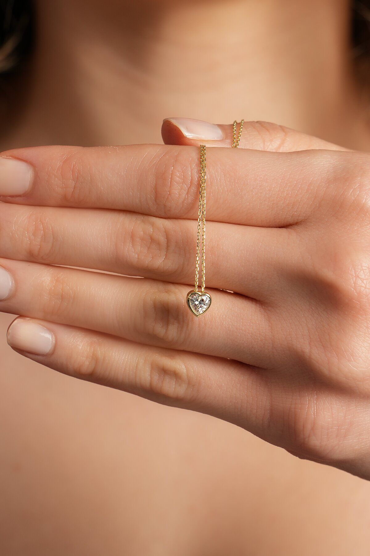 Kolyecik 14 Ayar Altın Beyaz Kalp Kolye