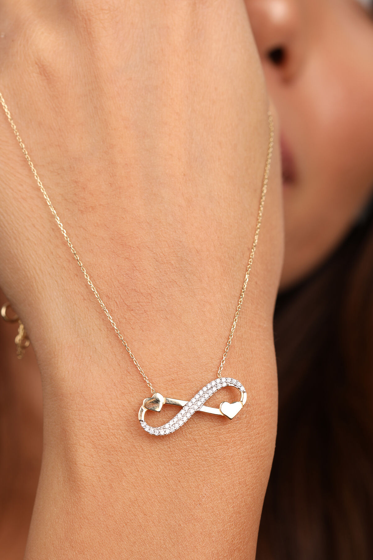 Kolyecik 14 Ayar Altın Çift Kalpli Sonsuzluk Kolye