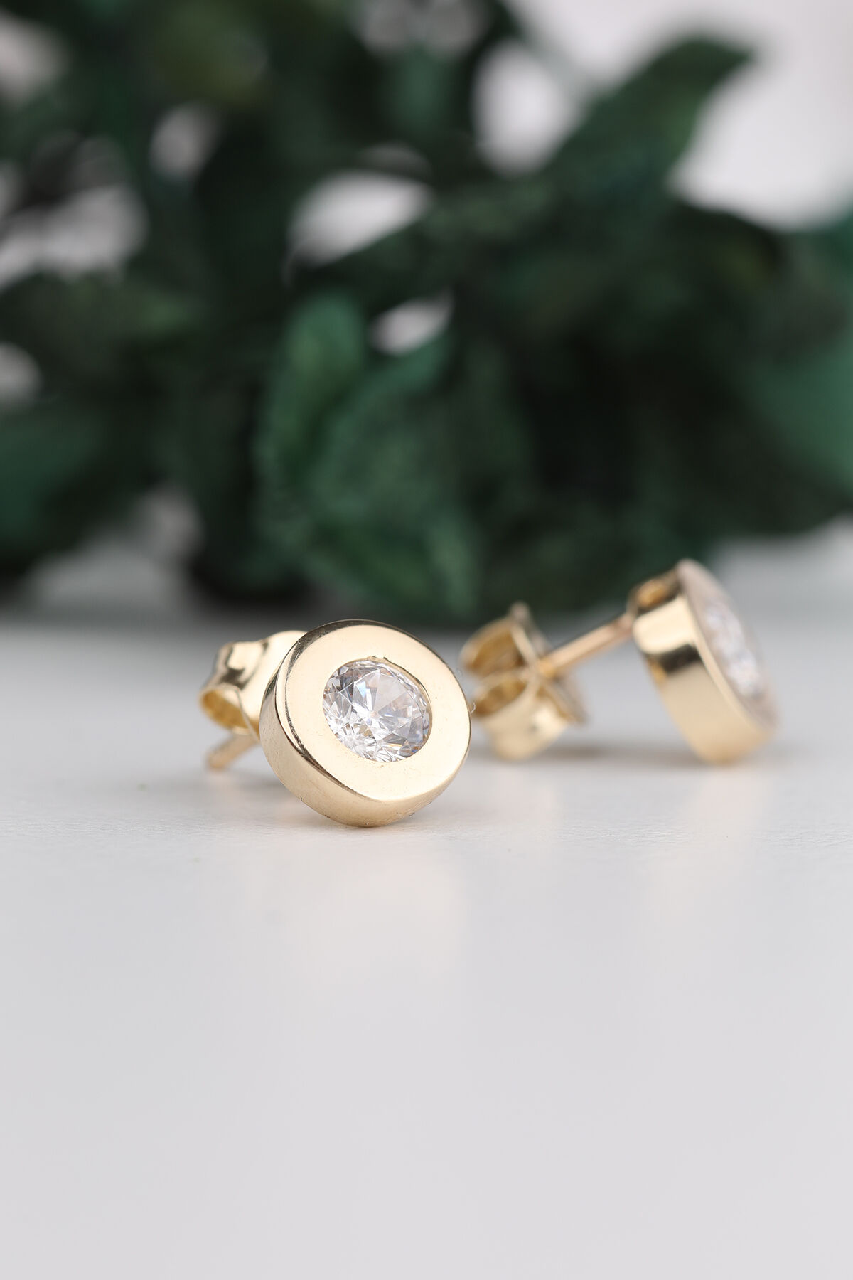 Kolyecik 14 Ayar Altın Cilalı Tektaş Küpe