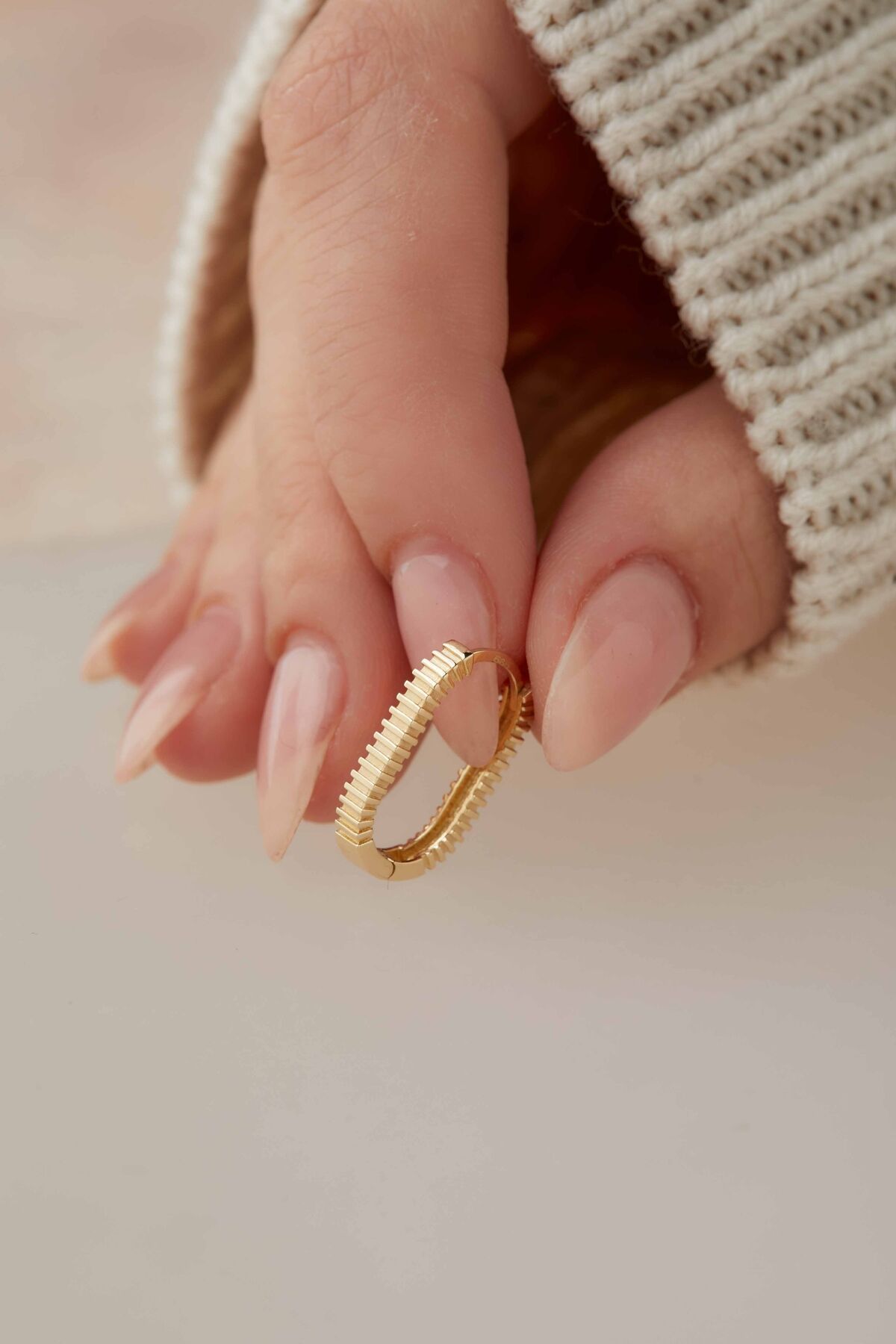 Kolyecik 14 Ayar Altın Çizgili Halka Küpe