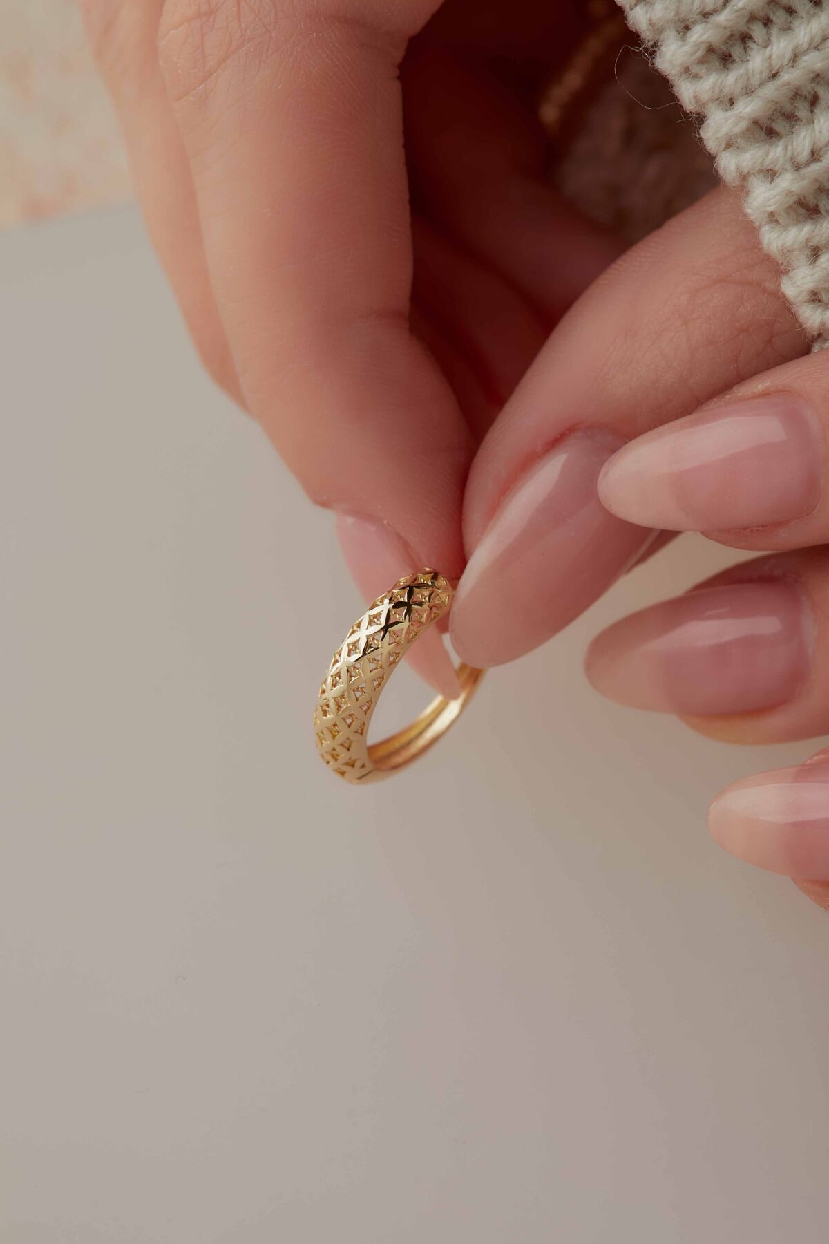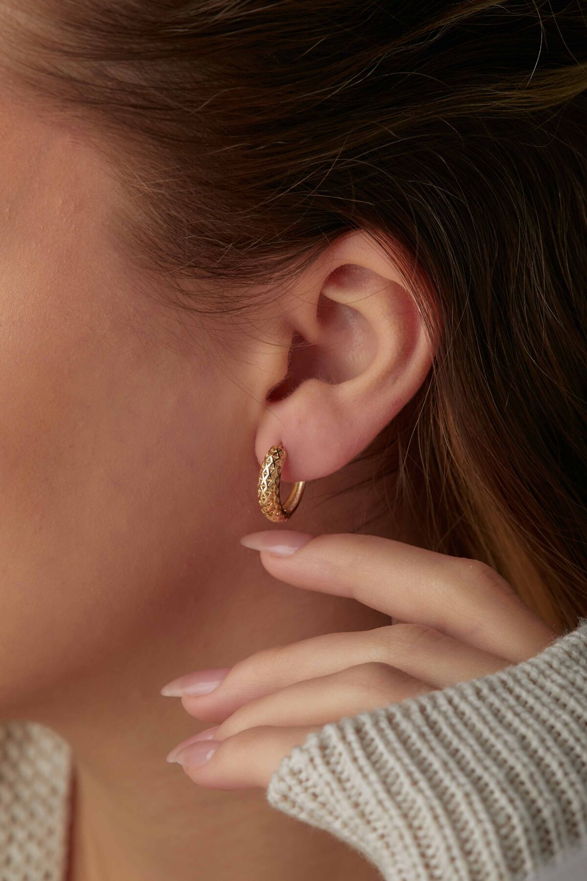 Kolyecik’in zarif işçiliğiyle tasarladığı 14 Ayar Altın Desenli Halka Küpe, 2,51 gram ağırlığıyla kulağınızda dikkat çekici bir şıklık sunar. %100 14 Ayar Altın kullanılarak el emeğiyle üretilen bu özel tasarım, desenli yüzeyi ile klasik halka formuna modern bir dokunuş kazandırır. Parlak altın dokusu, ışığı her açıdan yansıtarak zarif ve sofistike bir görünüm oluşturur. Günlük kombinlerde sade bir zarafet, özel günlerde ise göz alıcı bir tamamlayıcı olarak stilinizi ön plana çıkarır. El yapımı üretim süreci nedeniyle gramajda %5’e kadar küçük farklılıklar olabilir bu da her küpeye benzersiz bir karakter kazandırır. Hafif ve konforlu yapısıyla gün boyu rahat kullanım sağlar. Siparişleriniz özenle hazırlanarak, sigortalı kargo ile en geç 2 iş günü içinde güvenle teslim edilir. Her ürüne özel orijinallik sertifikası mevcuttur.