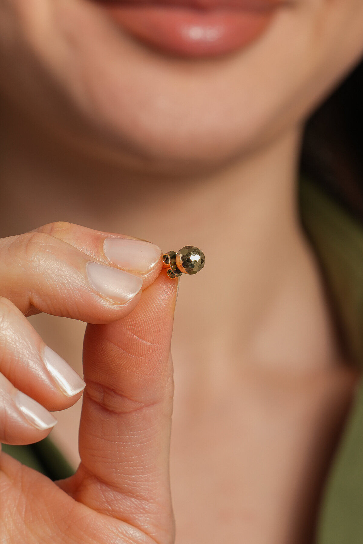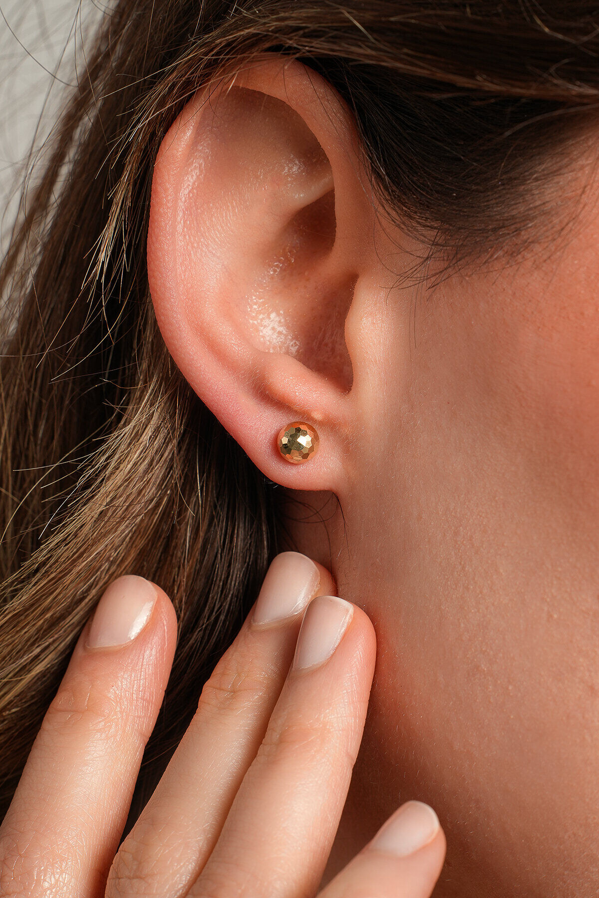 Kolyecik 14 Ayar Altın Desenli Top Küpe