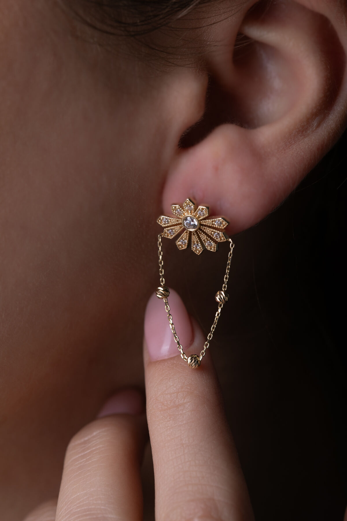 Kolyecik 14 Ayar Altın Dorika Sallantılı Çiçek Küpe