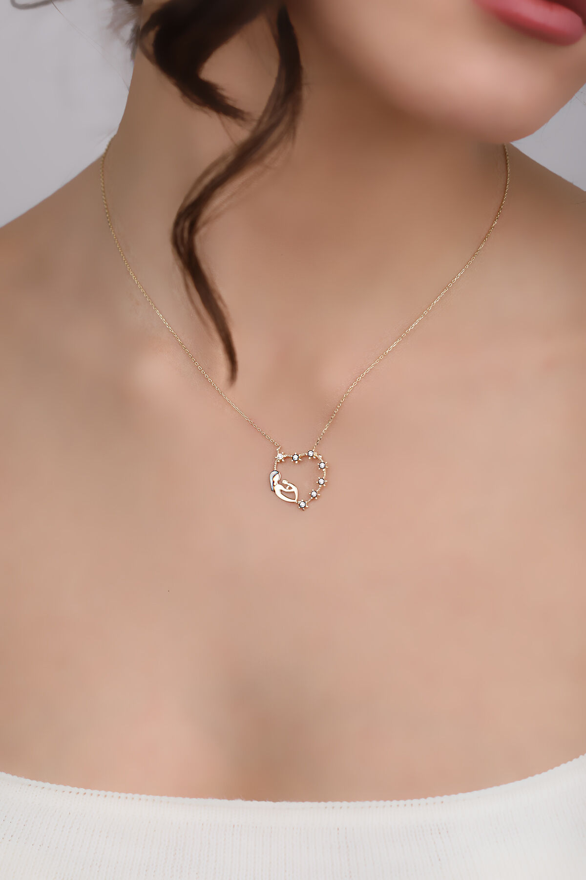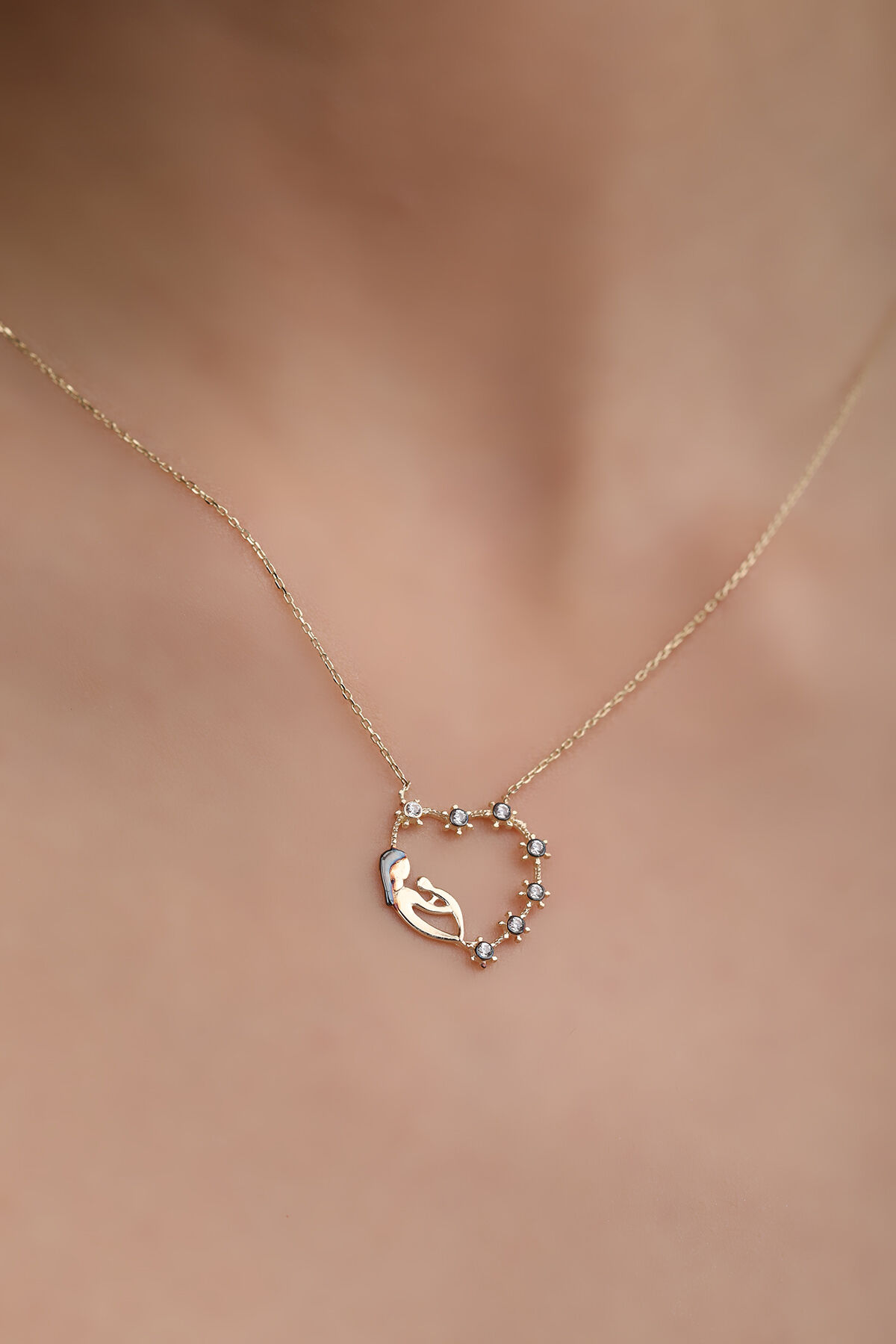 Kolyecik 14 Ayar Altın Elmas Montürlü Anne Çocuk Kolye