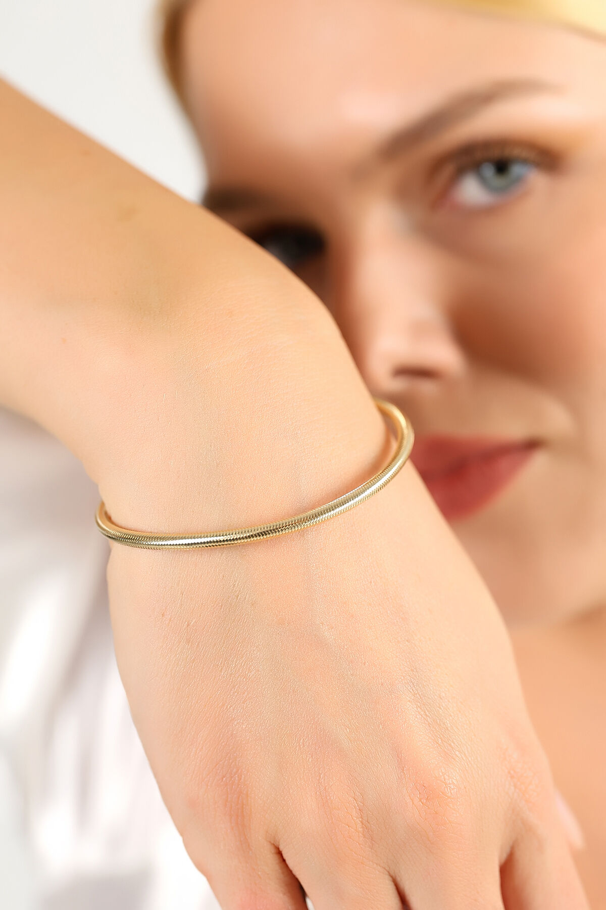 Kolyecik’in zarif el işçiliğiyle tasarlanan 14 Ayar Altın Esnek Yeşil Bileklik, hafif yapısıyla bileğinizde konforlu ve şık bir görünüm sunar. %100 14 Ayar Altın kullanılarak özenle üretilen bu özel tasarım, yeşil detayların modern ve enerjik havasını esnek formuyla bir araya getirir. Esnek yapısı sayesinde bileğinize kolayca uyum sağlar ve gün boyu rahat bir kullanım imkânı sunar. Günlük kombinlerde stilinize canlı bir dokunuş yaparken, özel günlerde de zarif bir tamamlayıcı olur. Parlak altın yüzeyi ve dayanıklı yapısıyla uzun yıllar güvenle kullanılabilecek zamansız bir parçadır. El yapımı olması nedeniyle her bileklik eşsiz bir karakter taşır. Siparişleriniz özenle hazırlanarak, sigortalı kargo ve orijinallik sertifikasıyla en geç 2 iş günü içinde güvenle teslim edilir.