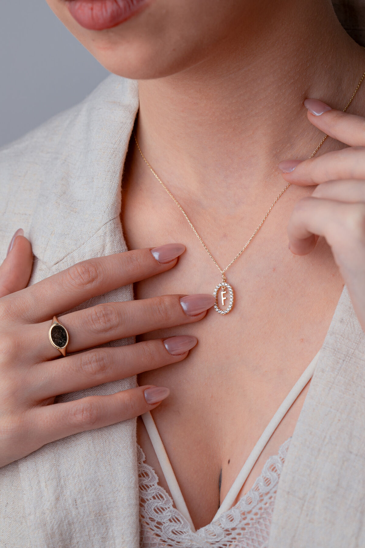 Kolyecik 14 Ayar Altın F Harfi Kolye