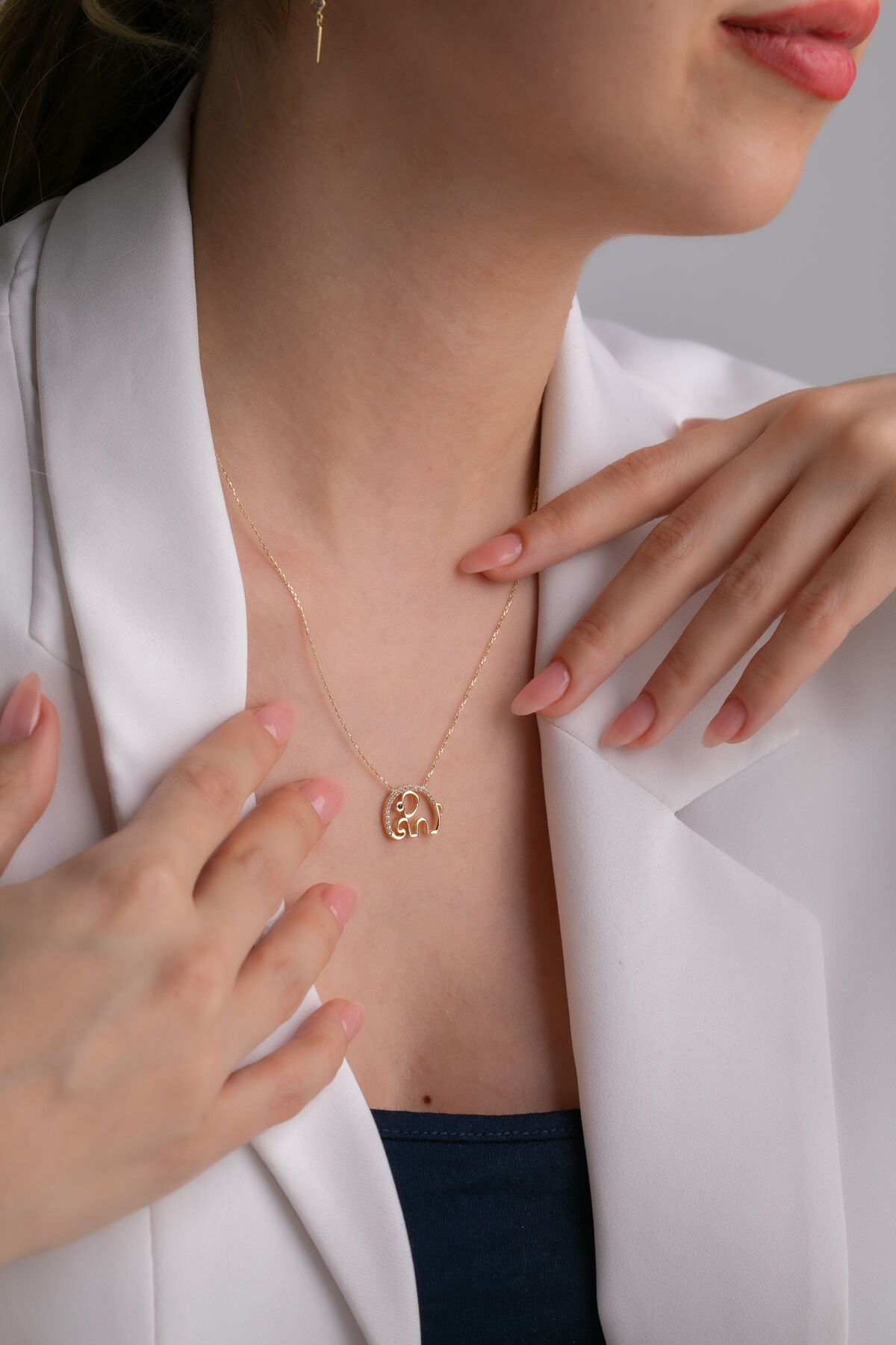 Şansın, bereketin ve bilgeliğin güçlü sembollerinden biri olan fil figürünü altının sıcak ışıltısıyla buluşturan 14 Ayar Altın Fil Kolye, 2,41 gram ağırlığındaki zarif ve anlamlı tasarımıyla stilinize karakter katar. Fil motifinin detaylı işçiliği, kolyeye hem güçlü hem de sevimli bir duruş kazandırarak günlük şıklıktan özel anlara kadar her tarza uyum sağlar. Bu özel kolye tamamen el yapımı olarak hazırlandığı için üretimin doğal yapısı gereği ağırlıkta %5 + / - değişkenlik gösterebilir. Bu doğal farklılıklar her bir parçayı benzersiz kılar ve el işçiliğinin değerini ön plana çıkarır. 14 ayar altının parlak yüzeyi, fil figürünün ince detaylarını belirginleştirerek uzun yıllar boyunca ışıltısını korur. Her sipariş titizlikle hazırlanır ve ürünün değerini belgeleyen ürüne özel sertifika mevcuttur. Tüm hazırlık süreçlerinin ardından kolyeniz 2 günde kargoya teslim edilir, böylece bu anlamlı ve şık tasarıma kısa sürede sahip olabilirsiniz. Filin güçlü, sabırlı ve bereketli enerjisini altının zarafetiyle birleştiren bu kolye hem kendiniz hem de sevdikleriniz için özel, anlamlı ve zarif bir hediye alternatifi sunar.
