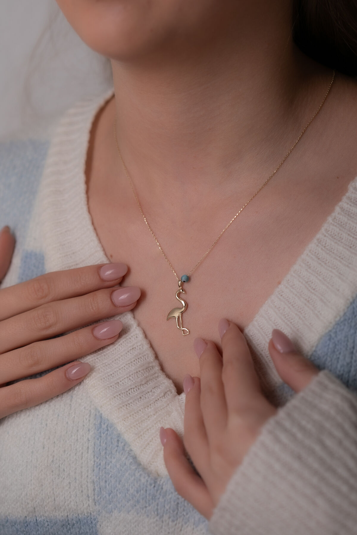 Zarafeti, dengeyi ve estetik duruşu temsil eden flamingo figürünü altının sıcak ışıltısıyla buluşturan 14 Ayar Altın Flamingo Kolye, 1,76 gram ağırlığındaki şık ve modern tasarımıyla stilinize dikkat çekici bir dokunuş katar. Flamingonun ince hatlarla işlenen formu, kolyeye hem zarif hem de sanatsal bir duruş kazandırarak günlük kombinlerden özel davetlere kadar her tarza kolayca uyum sağlar. Tamamen el yapımı olarak hazırlanan bu özel modelde, üretimin doğal yapısı gereği ağırlıkta %5 + / - değişkenlik gösterebilir. Bu doğal farklılıklar her bir kolyeyi benzersiz kılar ve el işçiliğinin değerini daha da ön plana çıkarır. 14 ayar altının parlak yüzeyi, flamingo figürünün zarif detaylarını belirginleştirerek uzun yıllar boyunca canlılığını korur. Her sipariş büyük bir özenle hazırlanır ve ürünün değerini belgeleyen ürüne özel sertifika mevcuttur. Tüm hazırlık sürecinin ardından kolyeniz 2 günde kargoya teslim edilir, böylece bu zarif ve modern tasarıma kısa sürede sahip olabilirsiniz. Flamingonun estetik duruşunu altının zarafetiyle birleştiren bu kolye hem kendiniz hem de sevdikleriniz için özel, anlamlı ve şık bir hediye seçeneği sunar.