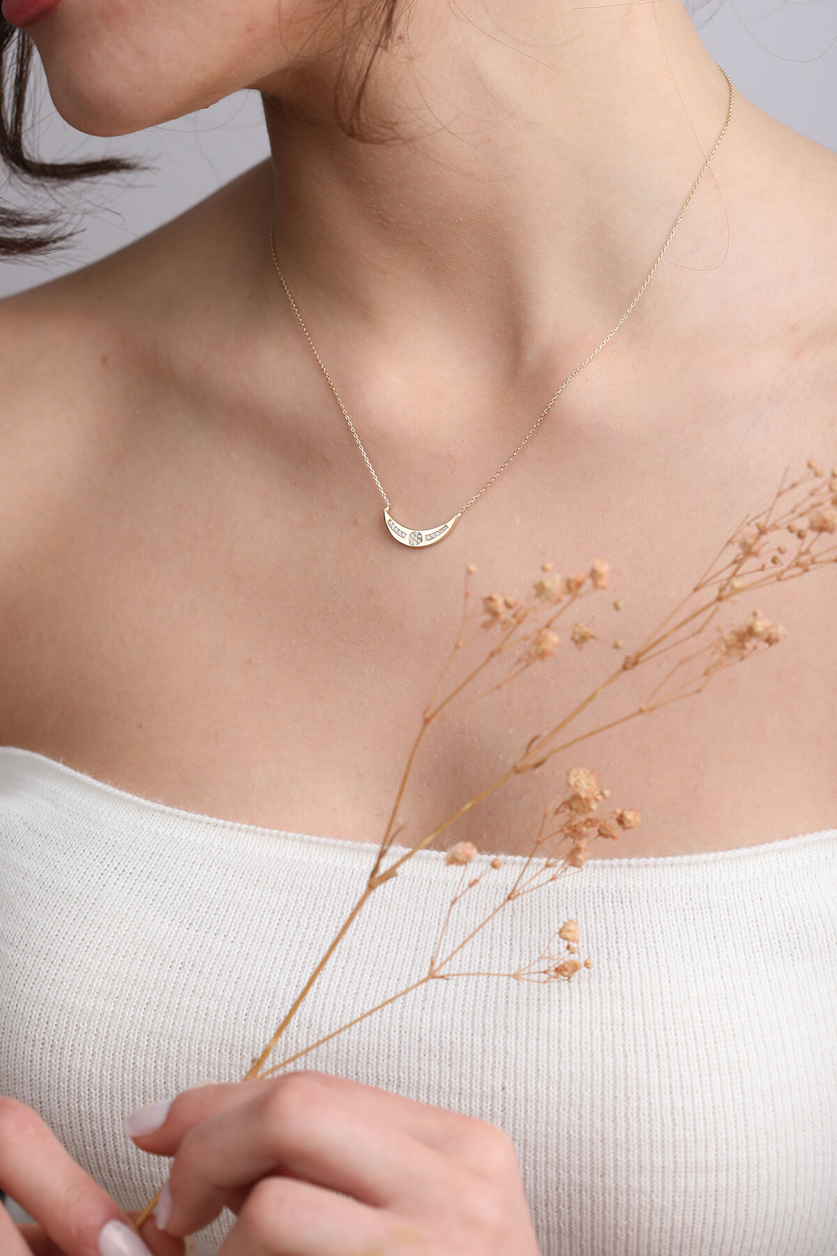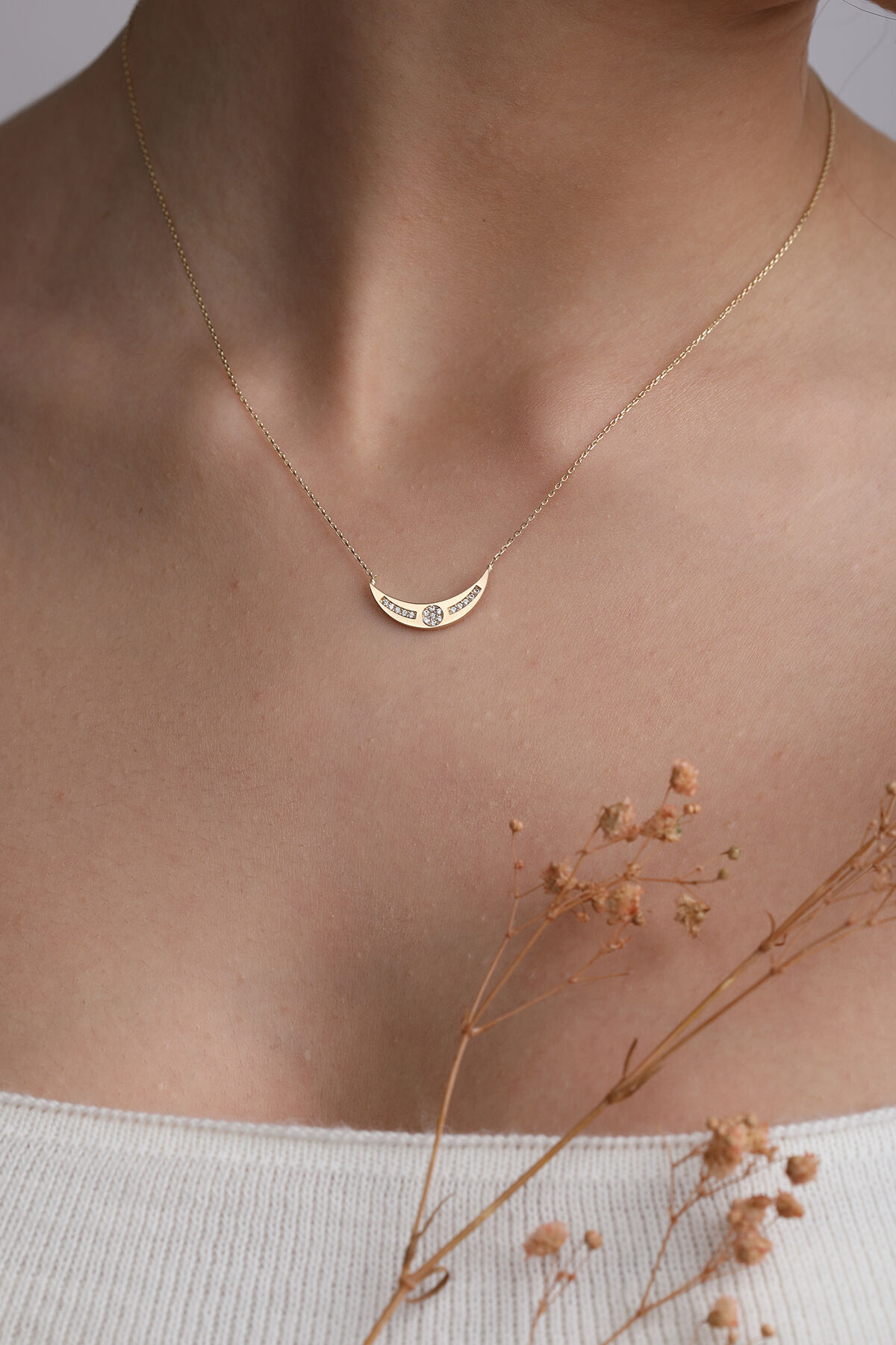 Kolyecik 14 Ayar Altın Hilal Kolye