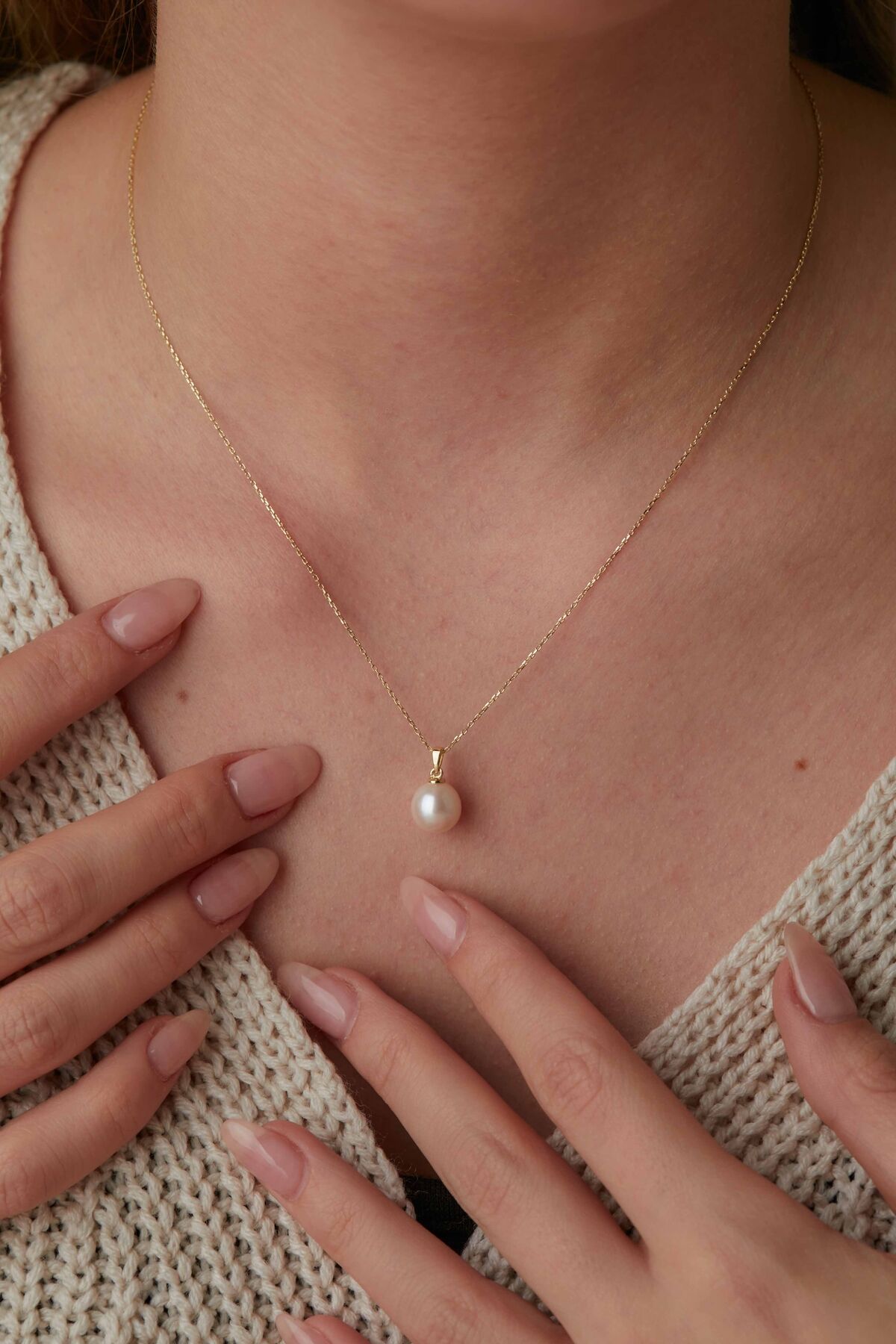 Kolyecik güvencesiyle sunulan 14 Ayar Altın İnci Kolye, 2,00 gram ağırlığıyla zarafeti ve sadeliği mükemmel bir uyumla buluşturur. Doğal incinin saf ışıltısı, altının sıcak tonuyla birleşerek boynunuzda asil bir duruş sergiler. %100 el yapımı olarak ustalarımızın titiz işçiliğiyle hazırlanmıştır. Her bir kolye, el emeğinin getirdiği benzersiz detaylarla kendine özgü bir karakter taşır. 42 cm uzunluğundaki zarif zinciriyle hem günlük şıklıkta hem de özel davetlerde zarif bir tamamlayıcıdır. İncinin doğallığı ve altının zarafetiyle tasarlanan bu kolye, zamansız bir stil sunar. Üretim sürecindeki hassasiyet nedeniyle gramajda ±%5 oranında küçük farklılıklar görülebilir. Ürün, orijinalliğini belgeleyen özel sertifikasıyla birlikte güvenle gönderilir. 2 iş günü içinde kargoya teslim edilir ve sigortalı şekilde size ulaştırılır. Saf inci detayıyla bu kolye, sadeliğin ve şıklığın en zarif ifadesidir.