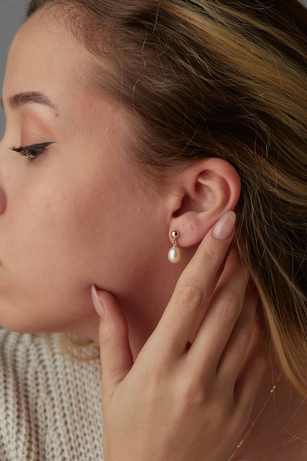 Kolyecik 14 Ayar Altın İnci Küpe