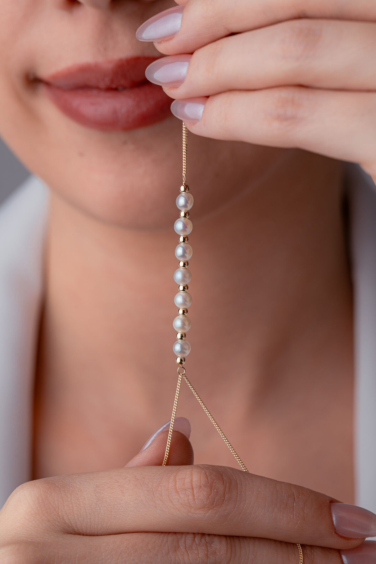 Kolyecik 14 Ayar Altın İnci Sıralı Şahmeran