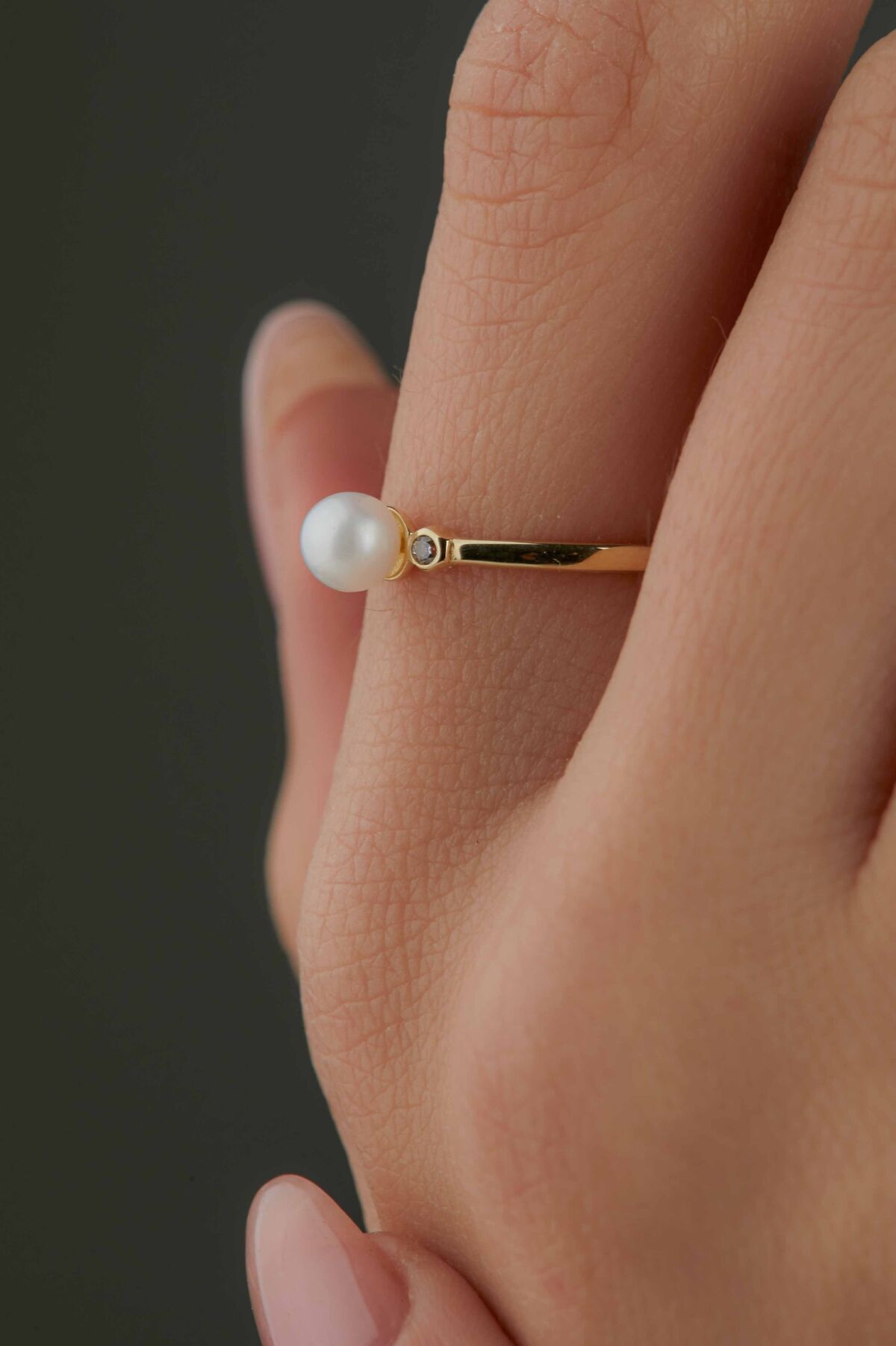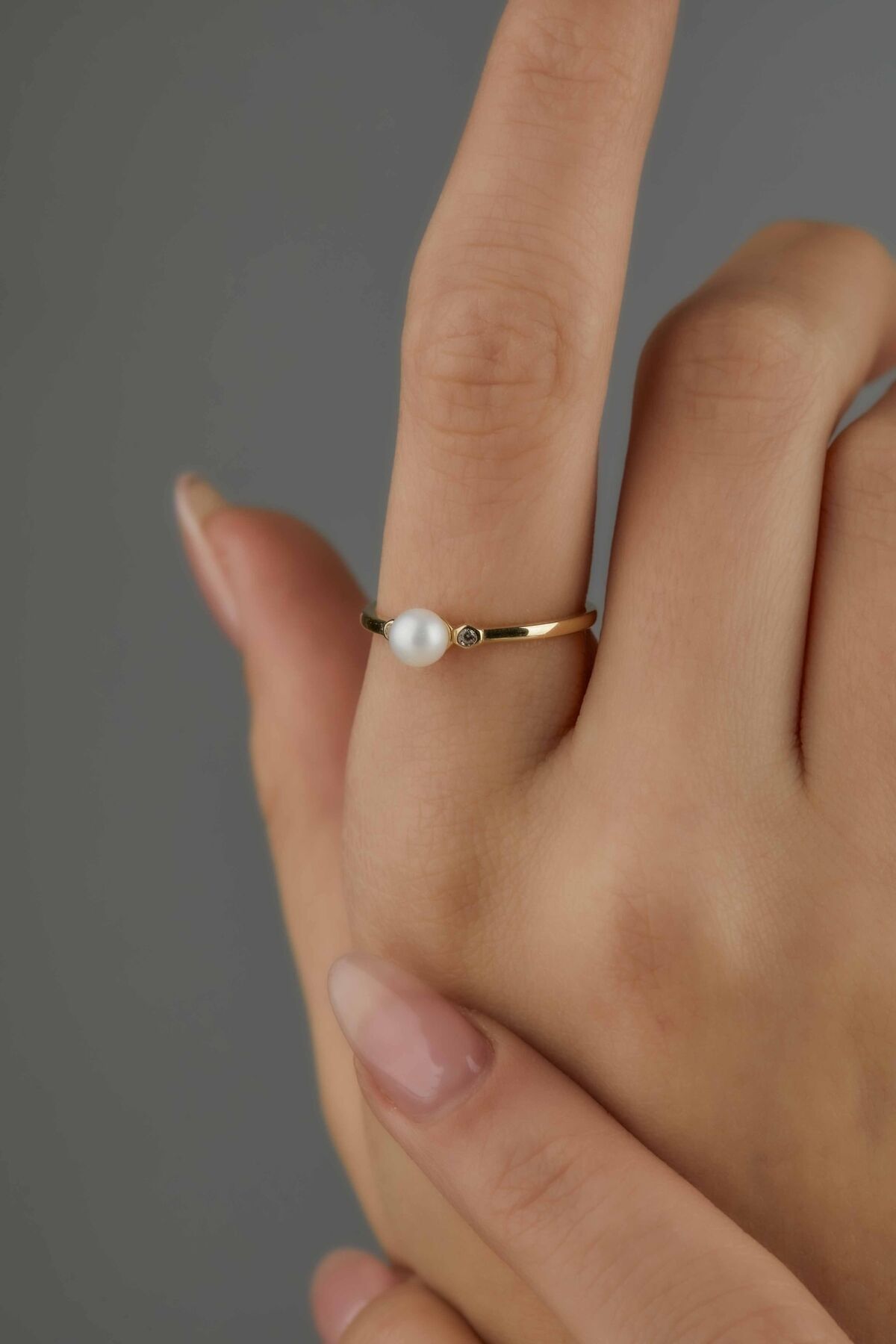 Kolyecik 14 Ayar Altın İnci Yüzük