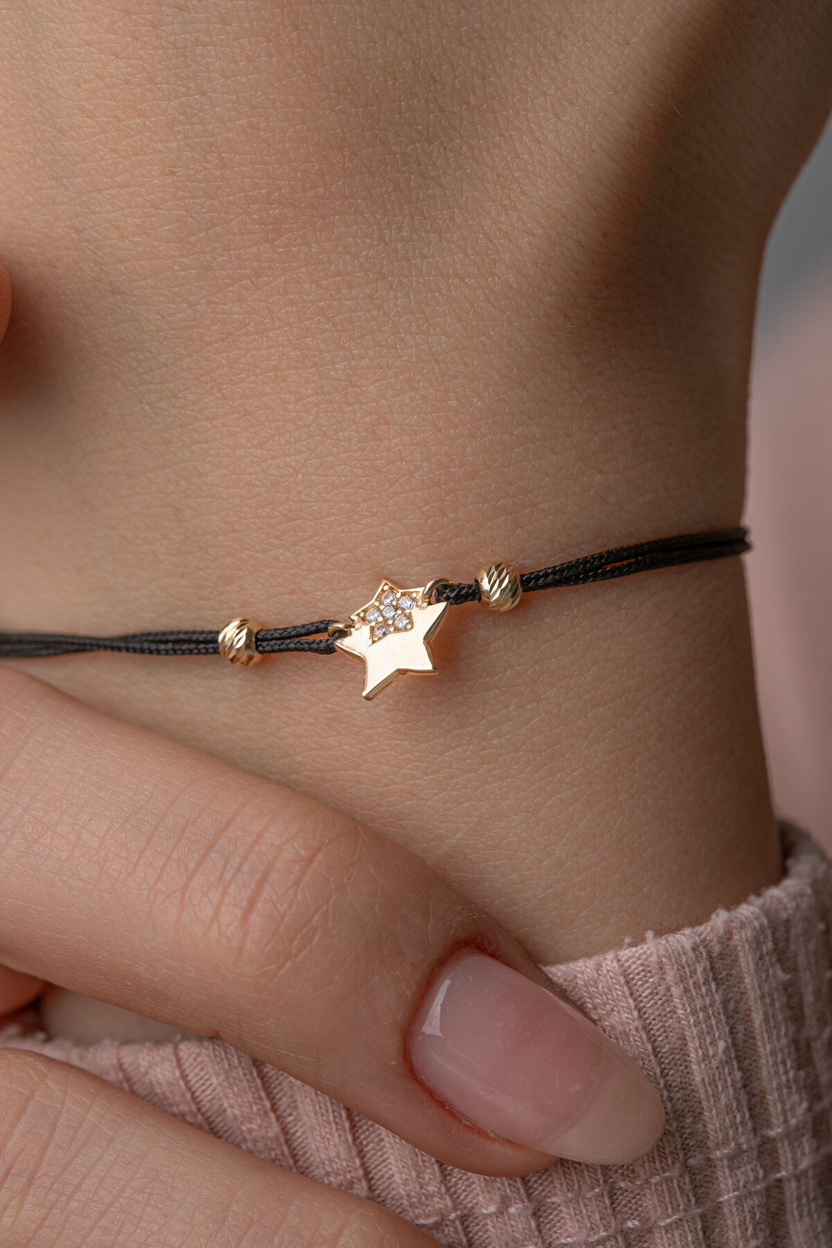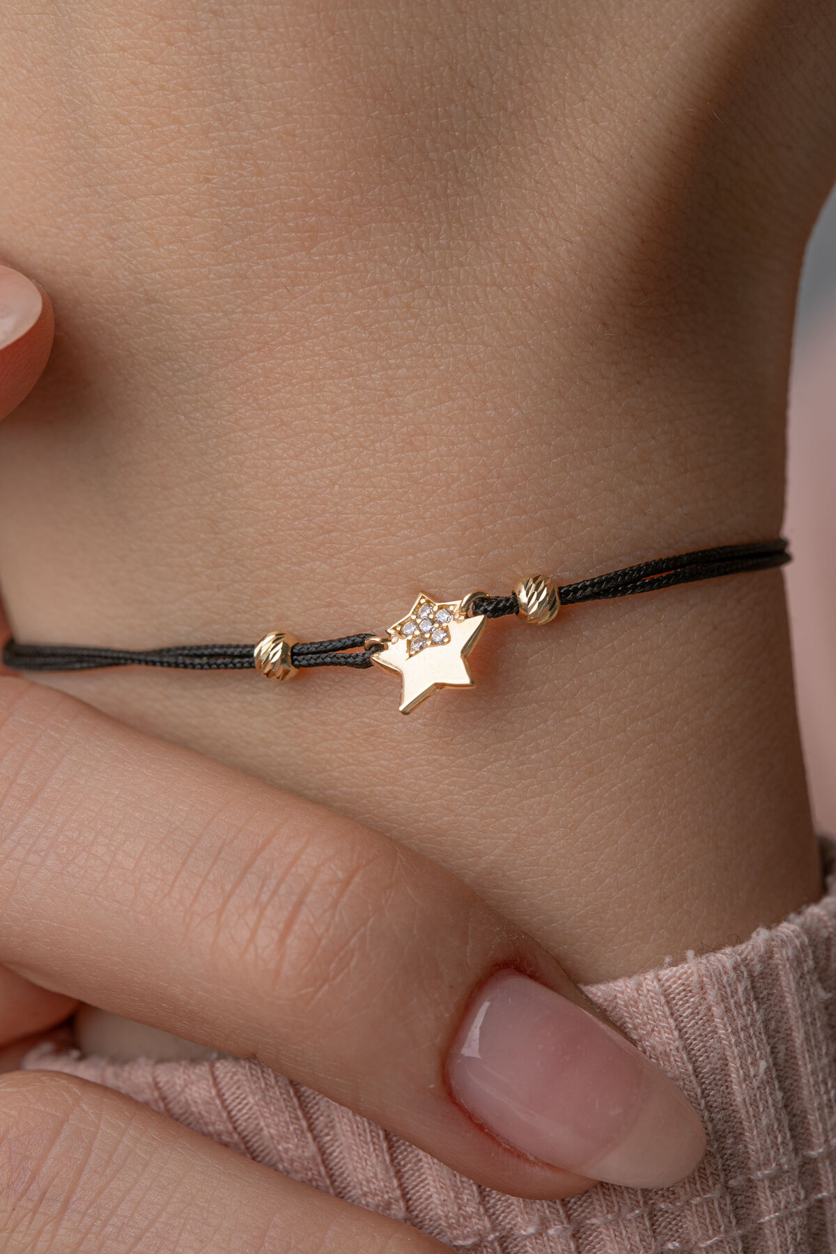 Kolyecik 14 Ayar Altın İpli Yıldız Bileklik