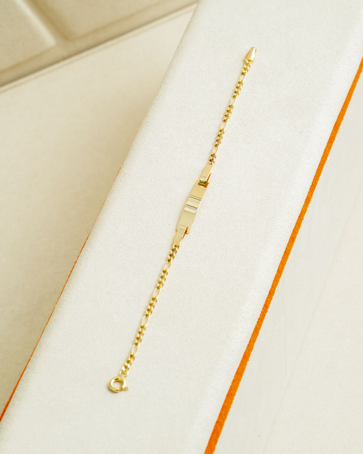 Kolyecik güvencesiyle sunulan 14 Ayar Altın İsimli Künye, 1,18 gram hafifliği ve 13 cm zincir uzunluğu ile çocuklar için özel olarak tasarlanmış zarif ve kullanışlı bir aksesuardır. İsimli tasarımı sayesinde çocuğunuza özel hâle getirilebilen bu künye, çocukların hassas bilek yapısına uyum sağlayacak ölçüsüyle güvenle kullanılabilir. Hafif yapısı sayesinde çocukların günlük kullanımında konfor sunar ve bilekte rahatsızlık hissi oluşturmaz. Doğum günü, ilk yaş, sünnet veya özel günlerde çocuklara verilebilecek anlamlı ve kalıcı bir hatıra olarak öne çıkar. %100 14 Ayar Altın kullanılarak ustalarımızın titiz el işçiliğiyle üretilmiştir. El yapımı olması nedeniyle gramajda ±%5 küçük farklılıklar görülebilir. Siparişiniz kişiselleştirme işlemi tamamlandıktan sonra sigortalı kargo ile gönderilir ve ayar, gramaj ile orijinalliğini belgeleyen sertifikasıyla teslim edilir. Kolyecik ile çocuklarınıza sevgi dolu, güvenli ve özel bir hatıra armağan edin!