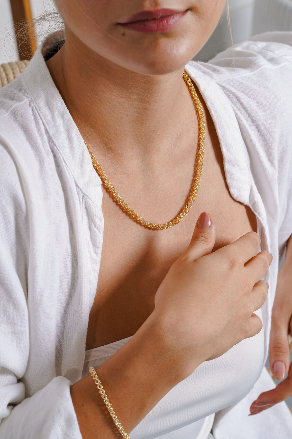Kolyecik 14 Ayar Altın İtalyan El İşi Set