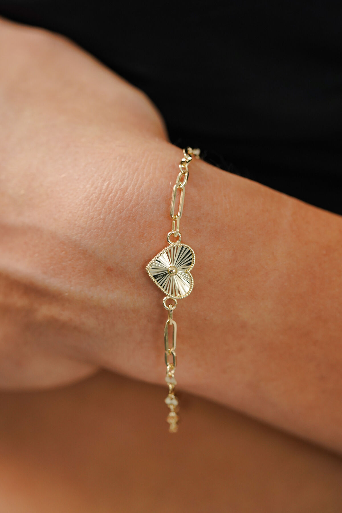 Kolyecik 14 Ayar Altın Kalemli Kalp Bileklik