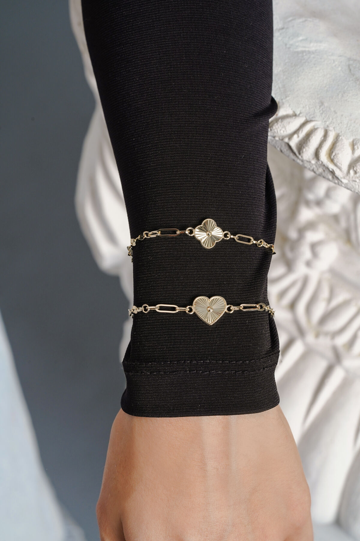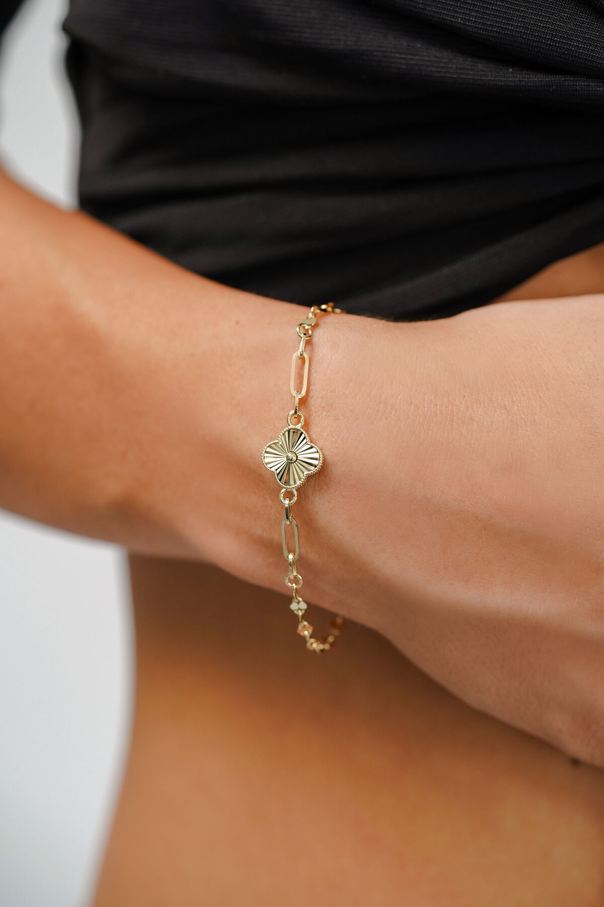 Kolyecik 14 Ayar Altın Kalemli Yonca Bileklik