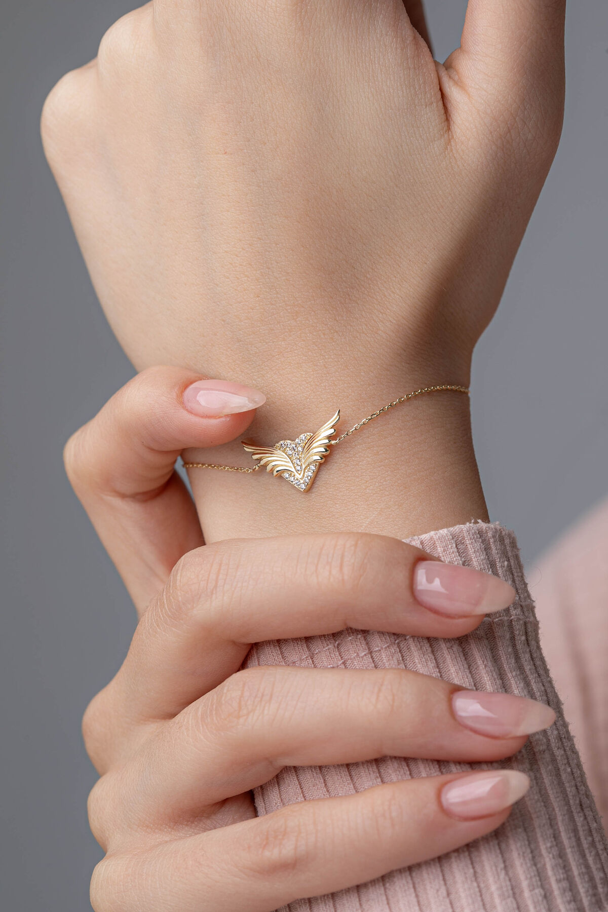 Kolyecik 14 Ayar Altın Kalp Bileklik