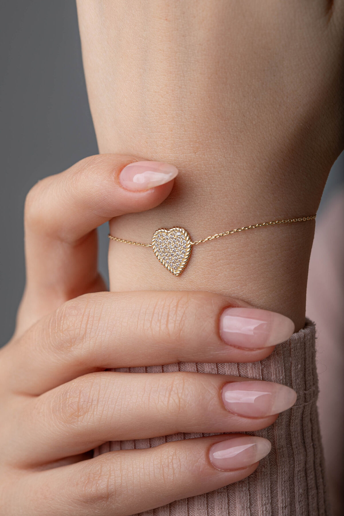 Kolyecik 14 Ayar Altın Kalp Bileklik