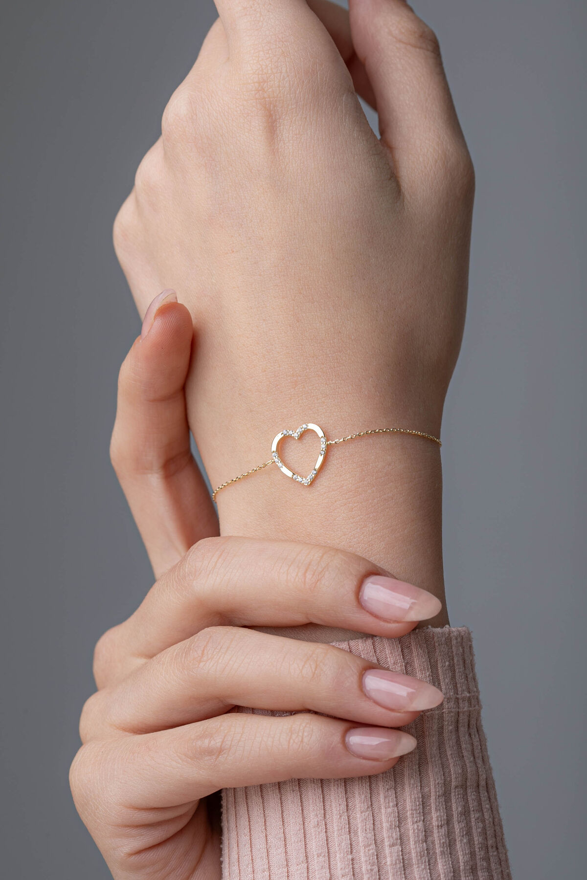 Kolyecik 14 Ayar Altın Kalp Bileklik