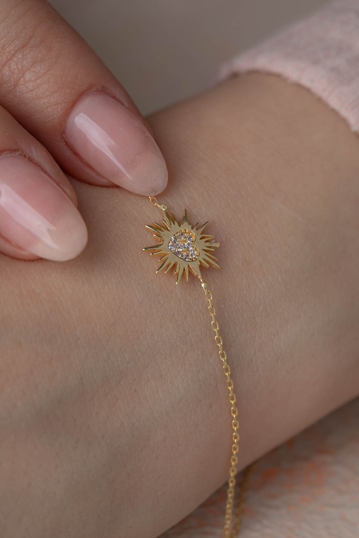Kolyecik 14 Ayar Altın Kalp Bileklik