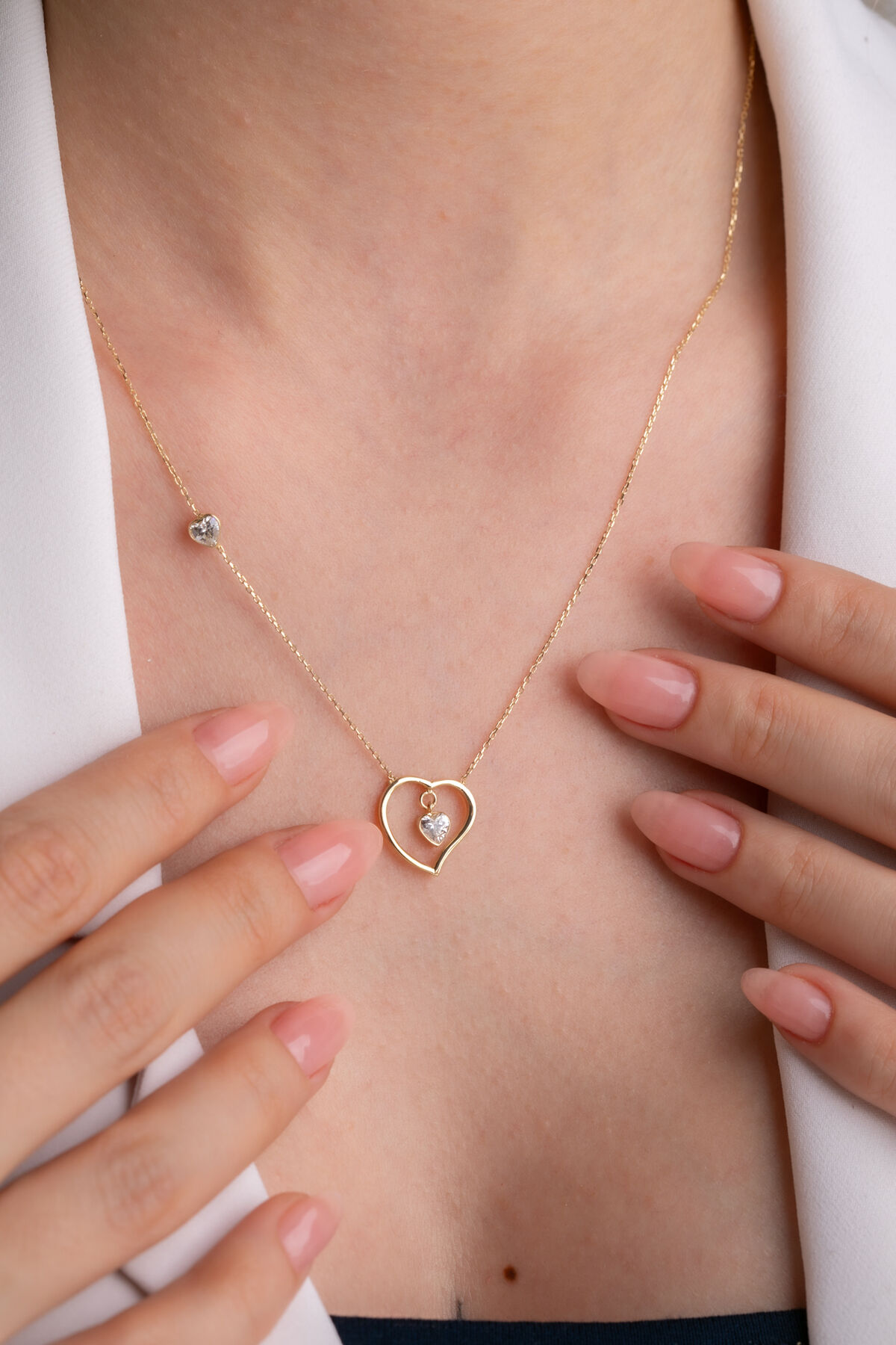 Kolyecik güvencesiyle sunulan 14 Ayar Altın Kalp Kolye, 2,65 gram ağırlığıyla romantik zarafeti ve modern ışıltıyı bir araya getiriyor.